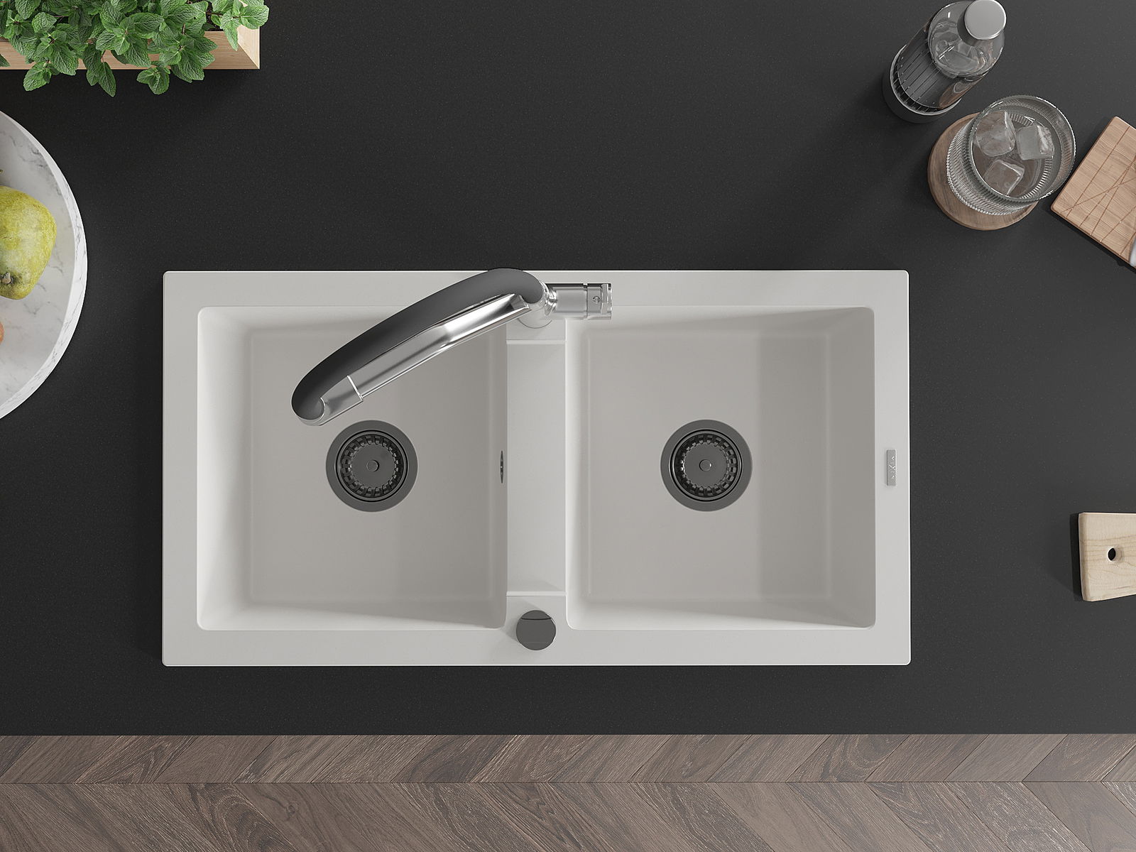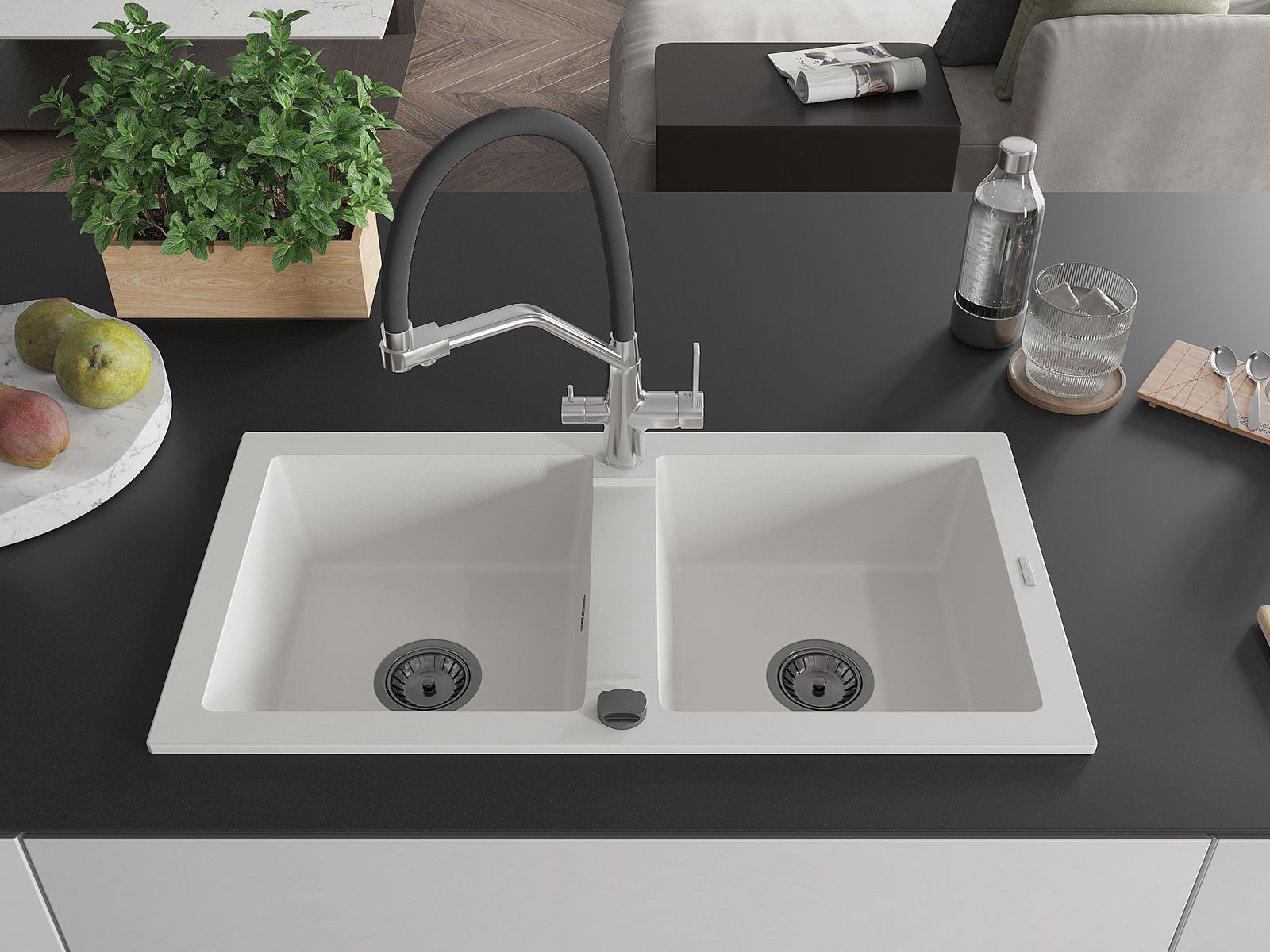 The sink is made of high quality granite. It is an elegant and, above all, practical complement to every kitchen, regardless of its style. High quality and granite durability ensure many years of use.
