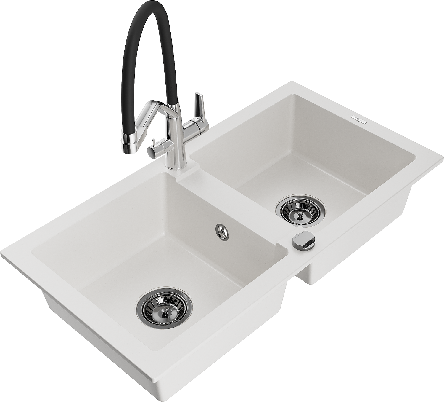 Mexen Mario 2-bowl granite sink with Duo kitchen tap, white - 6504-20-671701-07-B