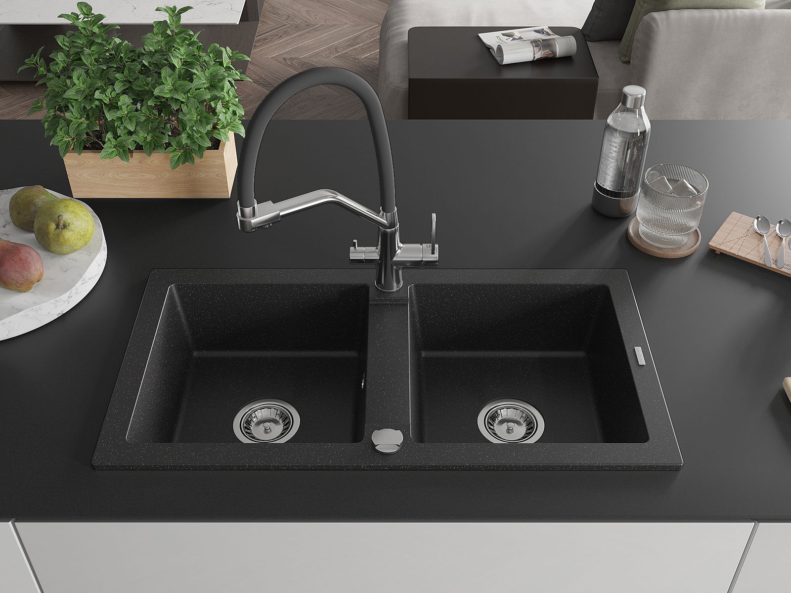 The sink is made of high quality granite. It is an elegant and, above all, practical complement to every kitchen, regardless of its style. High quality and granite durability ensure many years of use.
