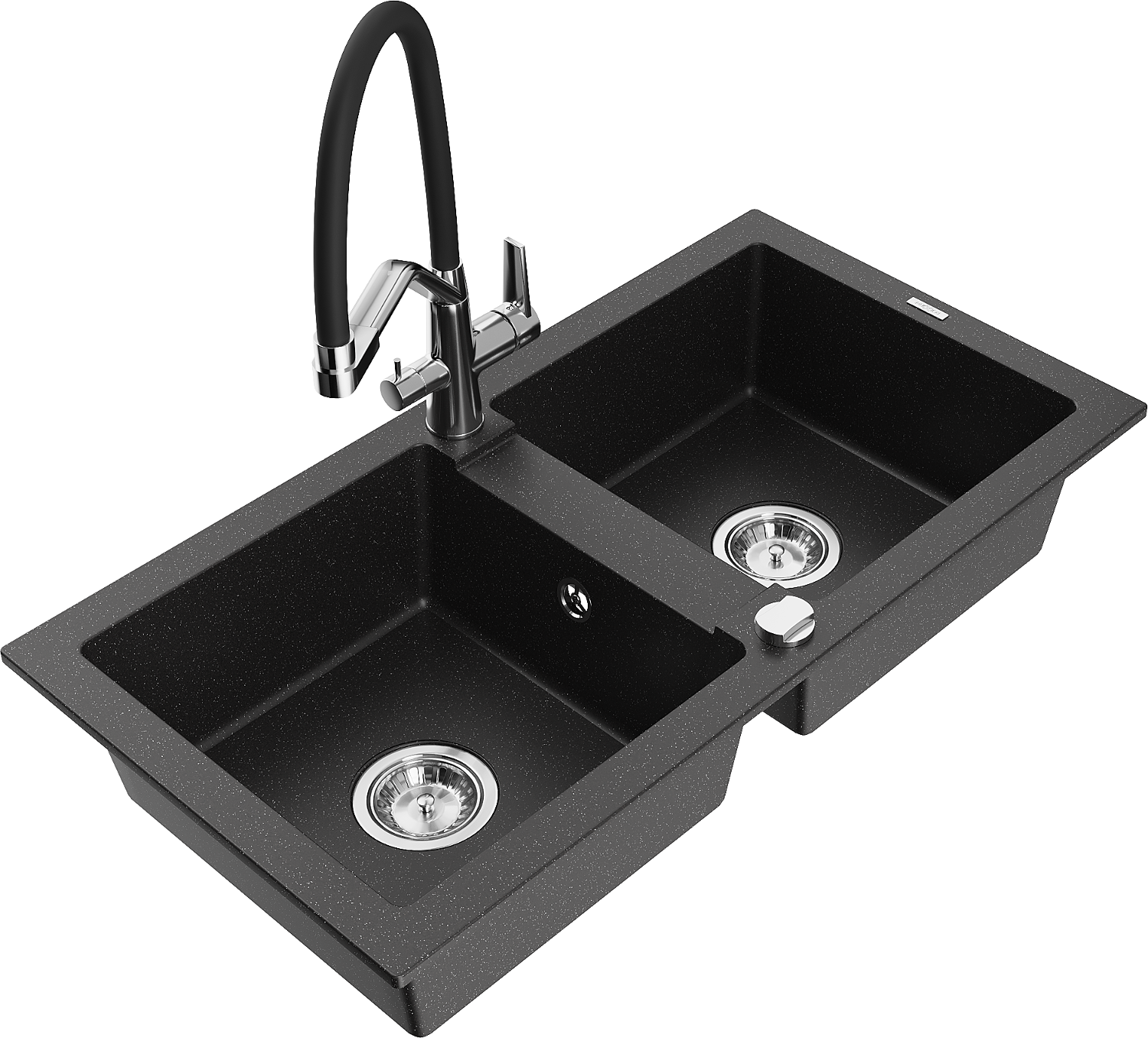 Mexen Mario granite sink 2-chamber with Duo kitchen tap, black/silver metallic - 6504-73-671701-07