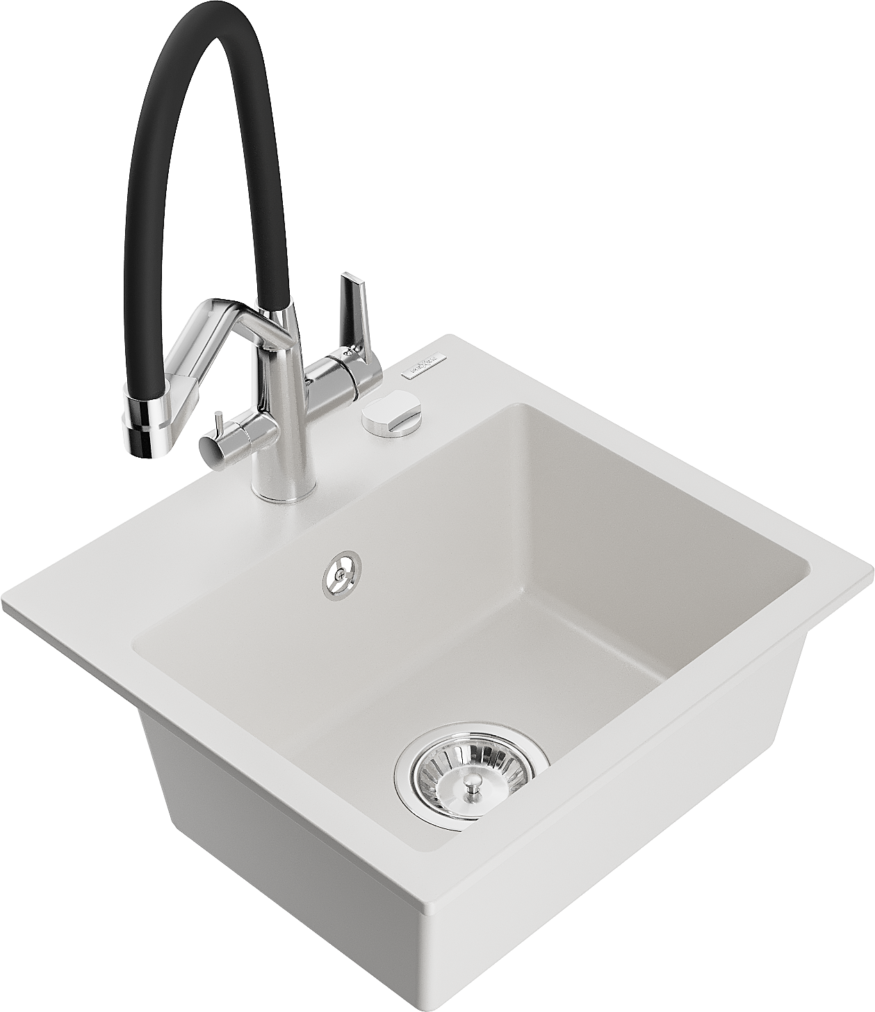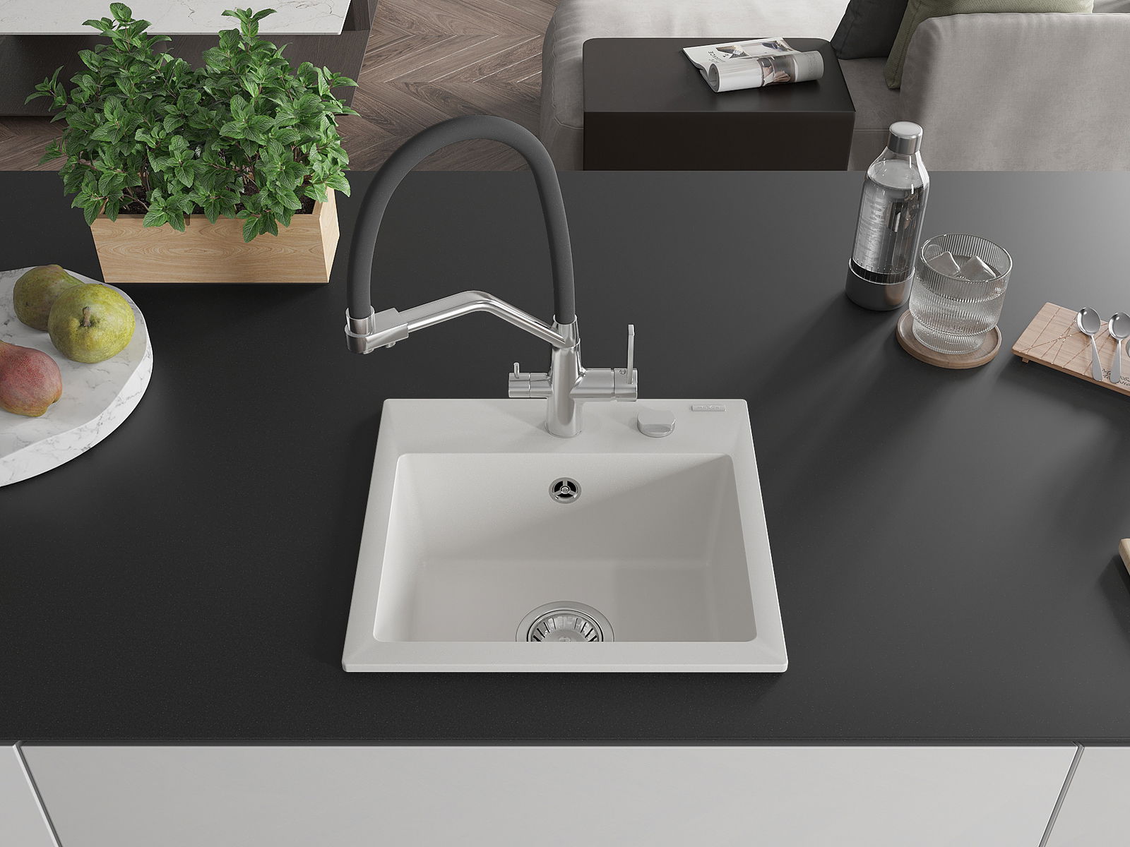 The surface of the sink is resistant to stains and discolouration, making it easy to maintain cleanliness and retain its colour for a long time of use. An aesthetic and practical addition to any kitchen.