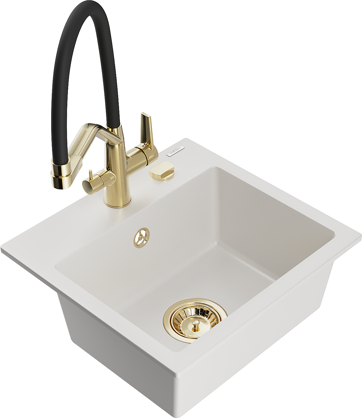 Mexen Milo 1-bowl granite sink with Duo kitchen tap, white - 6505-20-671701-57-G