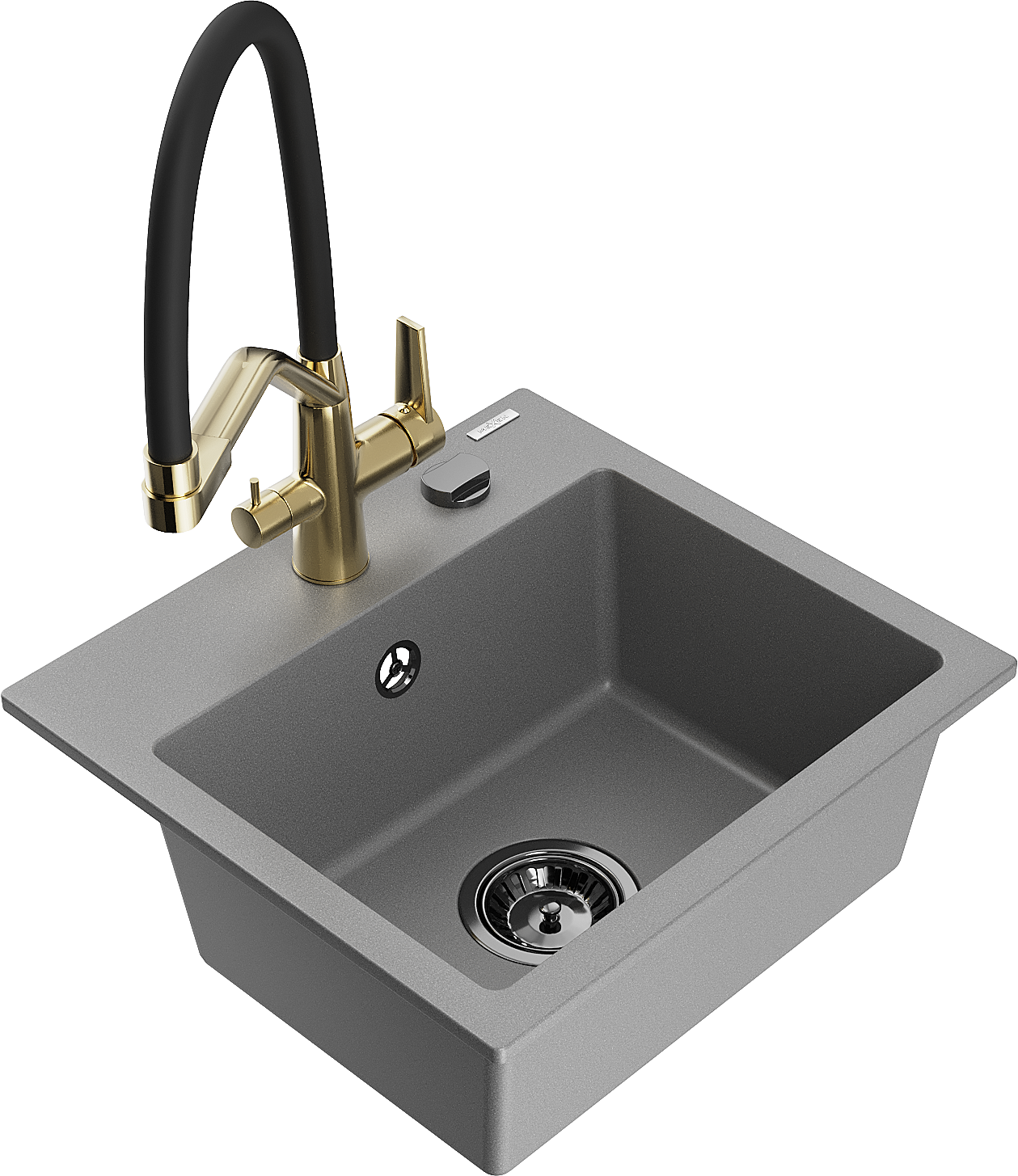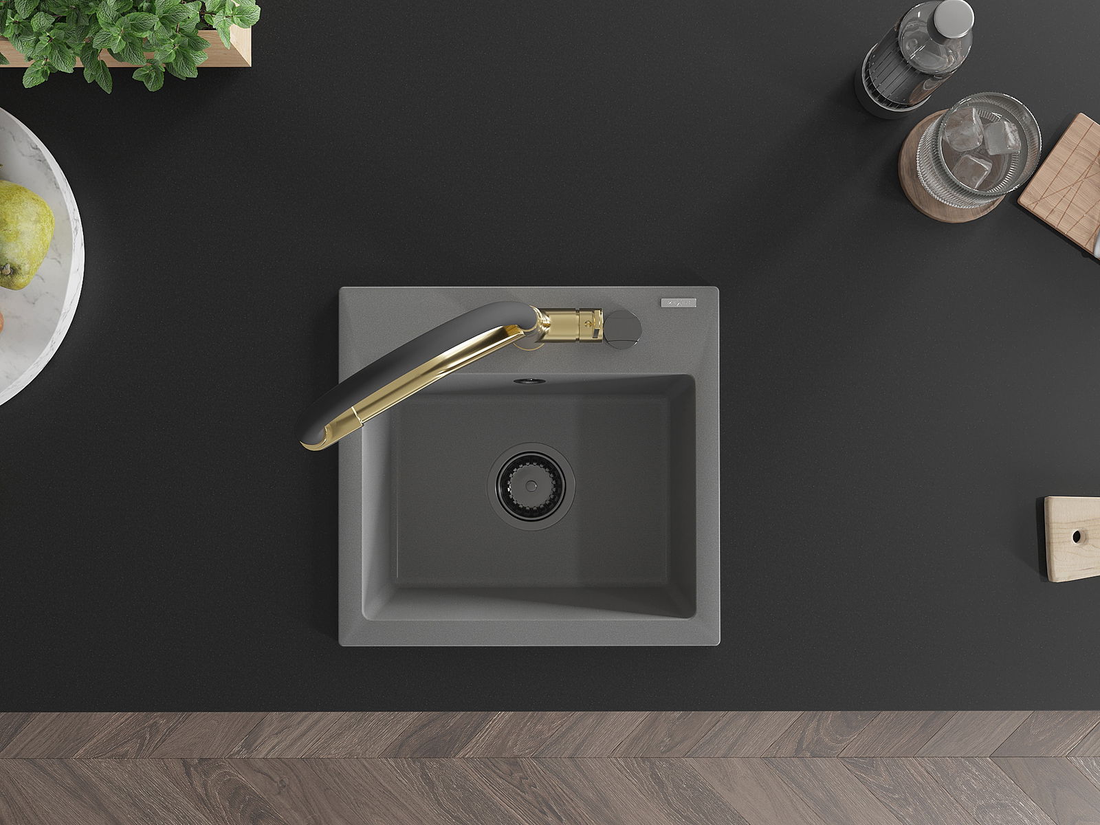 Mexen Milo granite sink 1-bowl with Duo kitchen tap, grey - 6505-71-671701-57-B