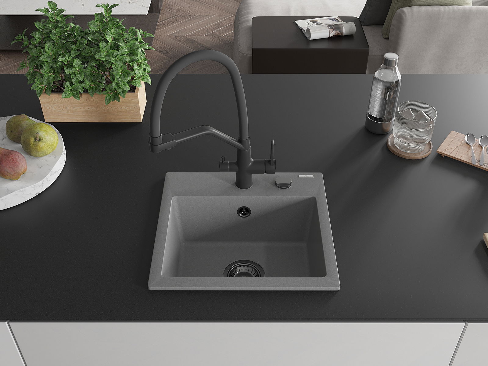 The surface of the sink is resistant to stains and discolouration, making it easy to maintain cleanliness and retain its colour for a long time of use. An aesthetic and practical addition to any kitchen.