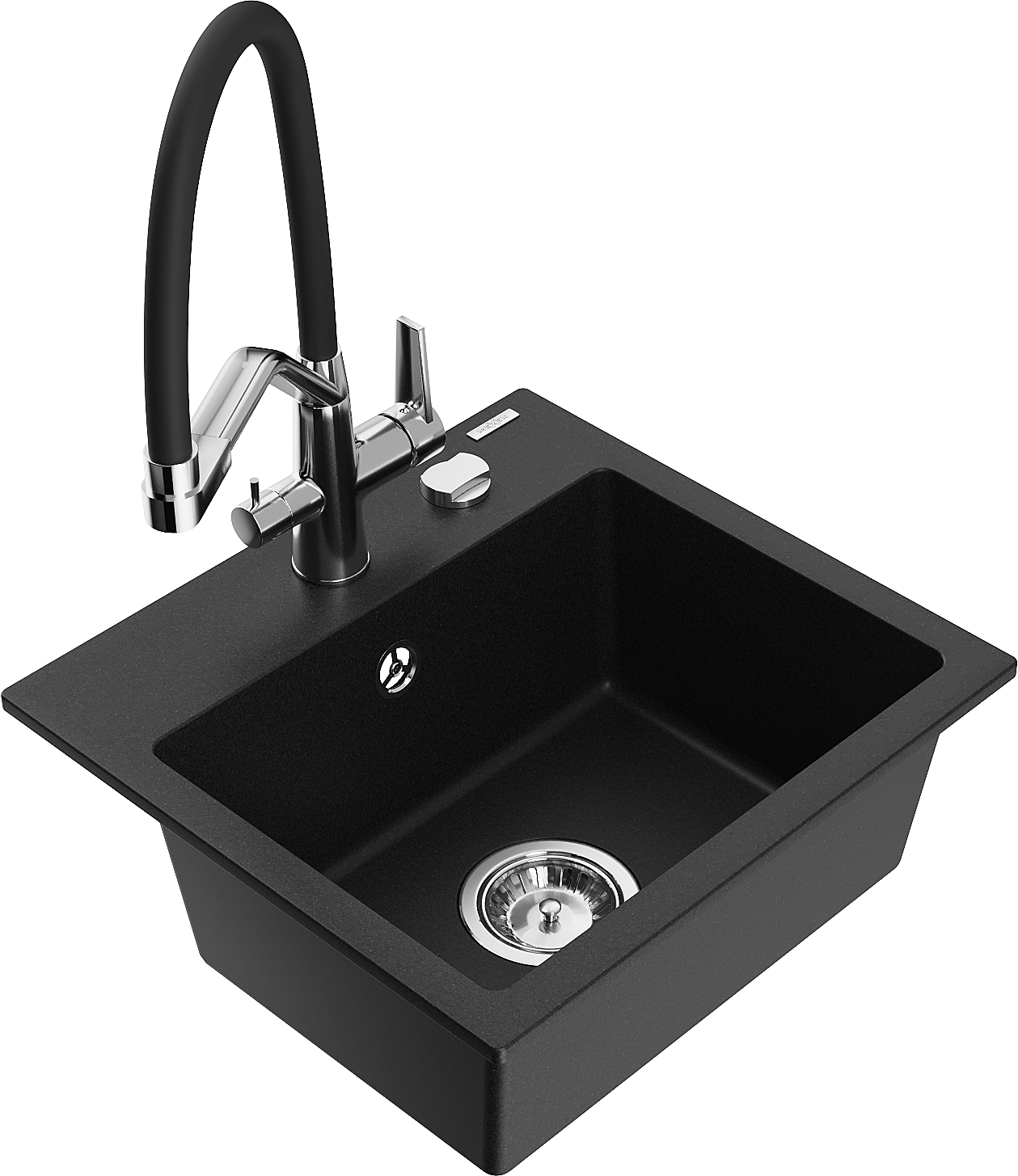 Mexen Milo 1-bowl granite sink with Duo kitchen tap, black - 6505-77-671701-07