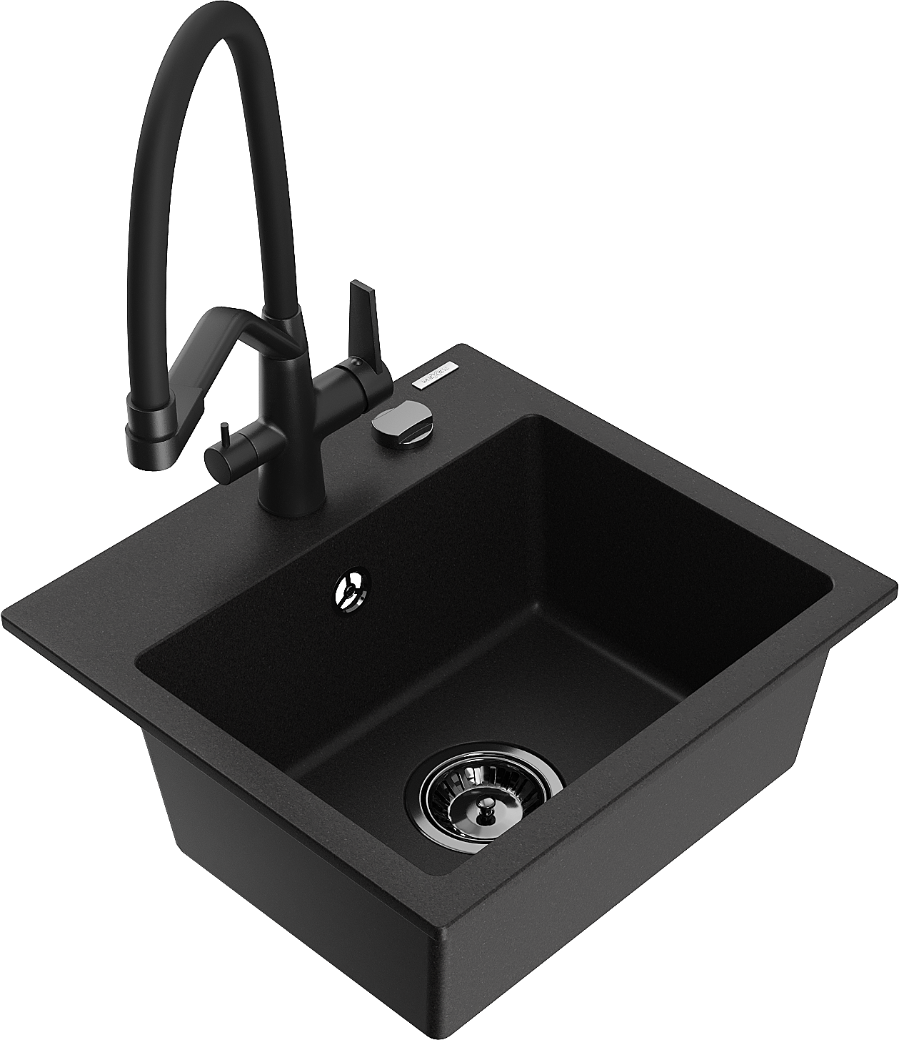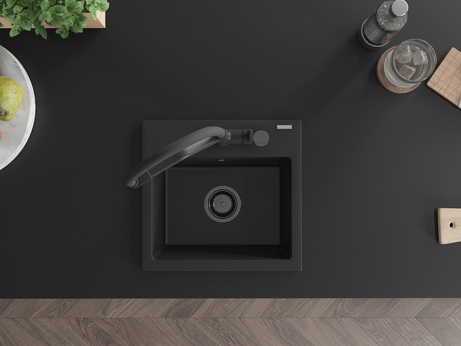 Mexen Milo granite sink 1-bowl with Duo kitchen tap, black - 6505-77-671701-70-B