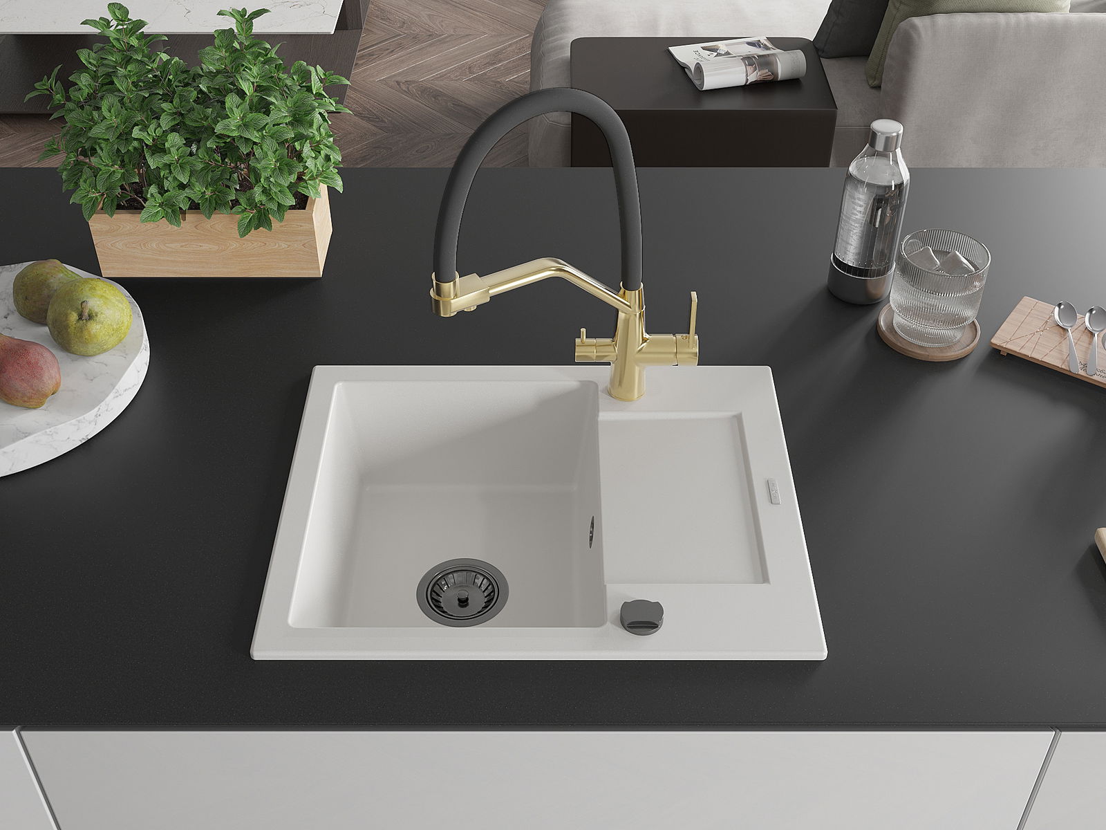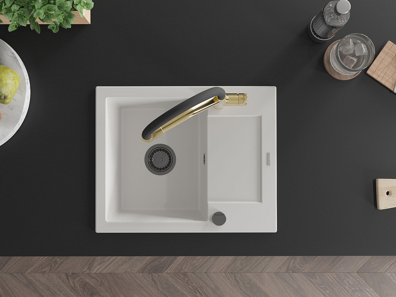 The sink is made of high quality granite. It is an elegant and, above all, practical complement to every kitchen, regardless of its style. High quality and granite durability ensure many years of use.