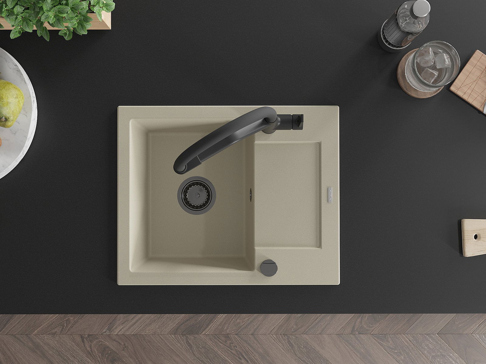Mexen Enzo granite kitchen sink 1-bowl with drainer and Duo kitchen tap, beige - 6506-69-671701-70-B