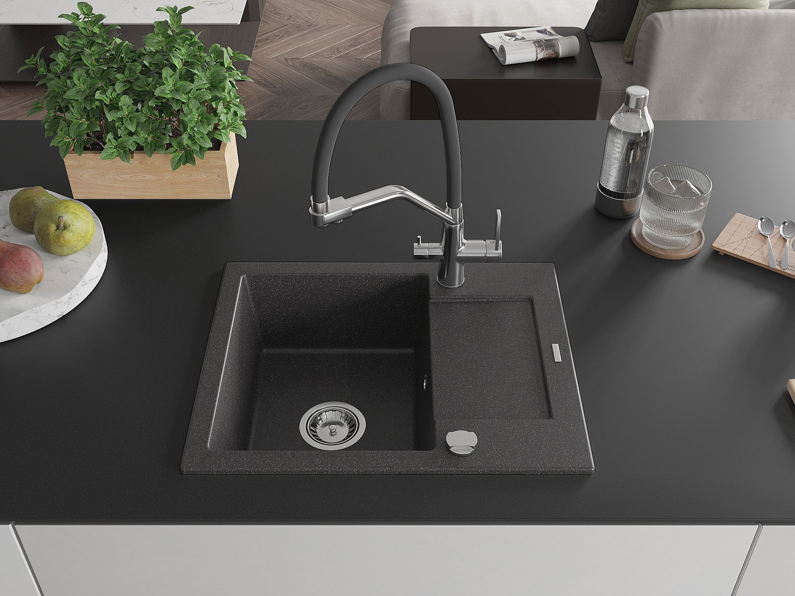 The sink is made from high-quality granite. It serves as an elegant and, above all, practical addition to any kitchen, regardless of its style. The high quality and durability of granite ensure many years of use.