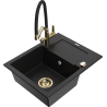 Mexen Enzo granite sink 1-bowl with drainer and Duo kitchen tap, speckled black - 6506-76-671701-57-G