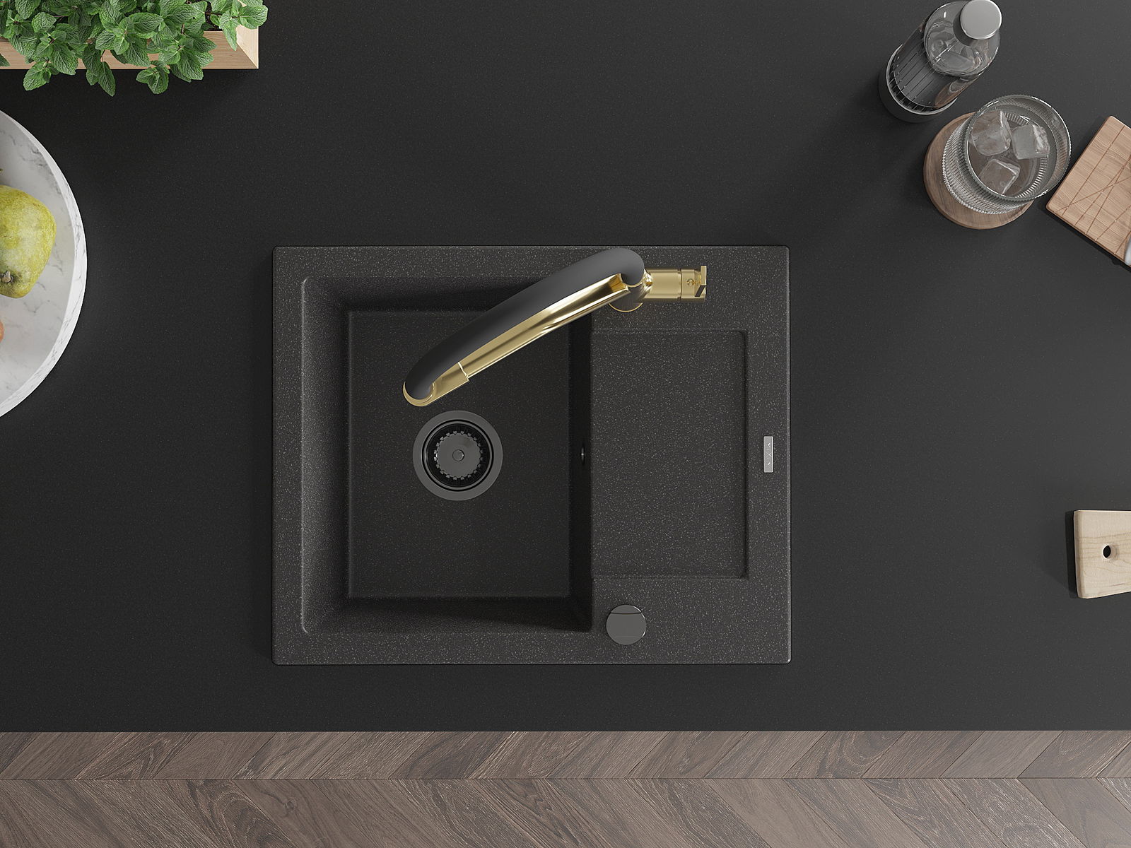 The sink is made of high quality granite. It is an elegant and, above all, practical complement to every kitchen, regardless of its style. High quality and granite durability ensure many years of use.