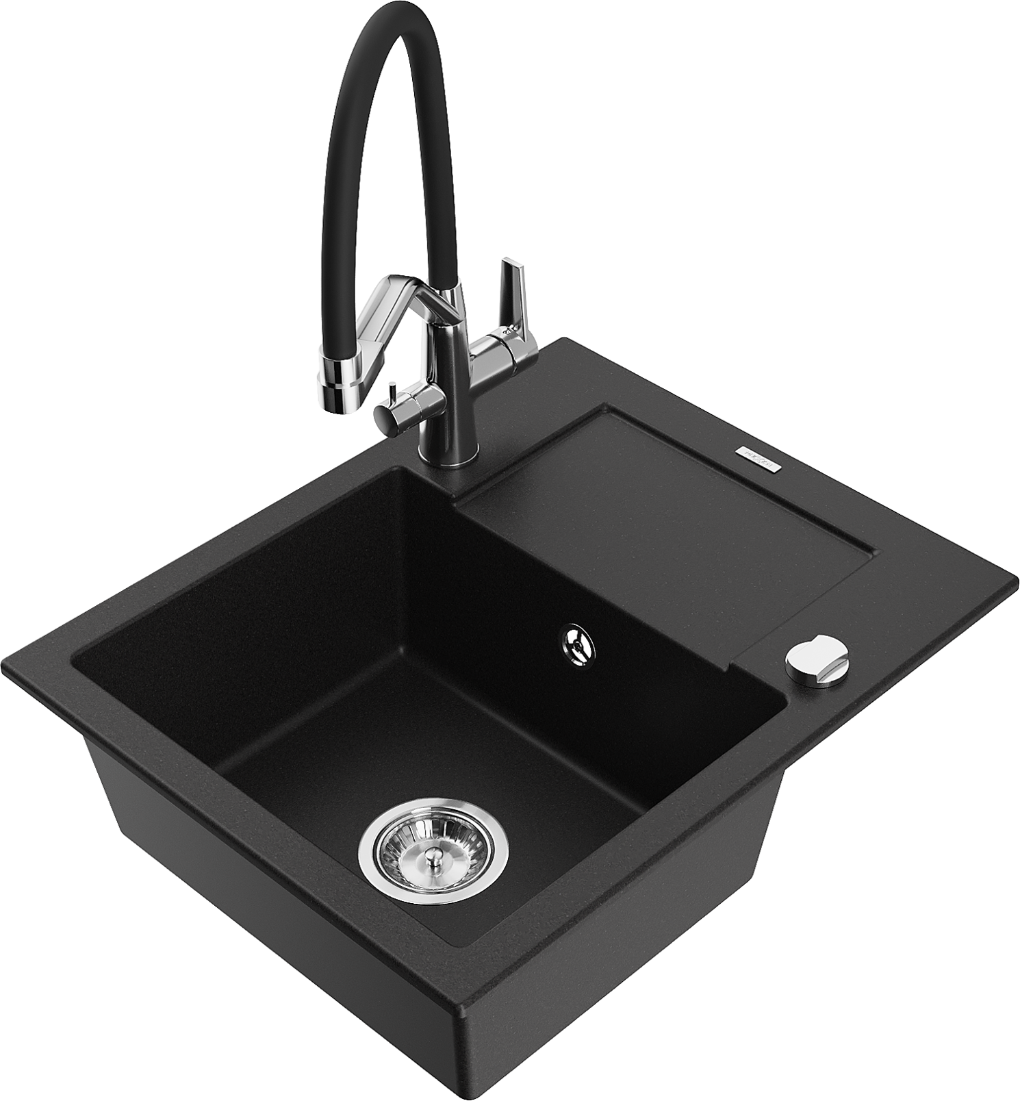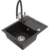 Mexen Enzo granite sink 1-bowl with drainer and Duo kitchen tap, black - 6506-77-671701-07