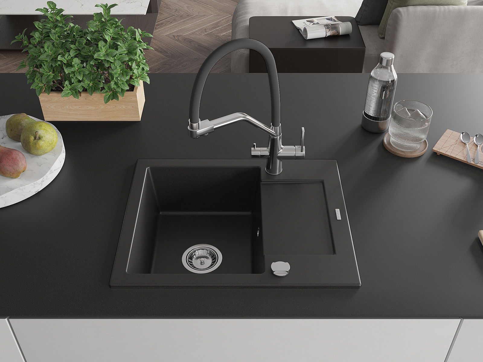 The sink is made of high quality granite. It is an elegant and, above all, practical complement to every kitchen, regardless of its style. High quality and granite durability ensure many years of use.