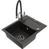 Mexen Enzo 1-bowl granite sink with drainer and Duo kitchen tap, black - 6506-77-671701-07-B