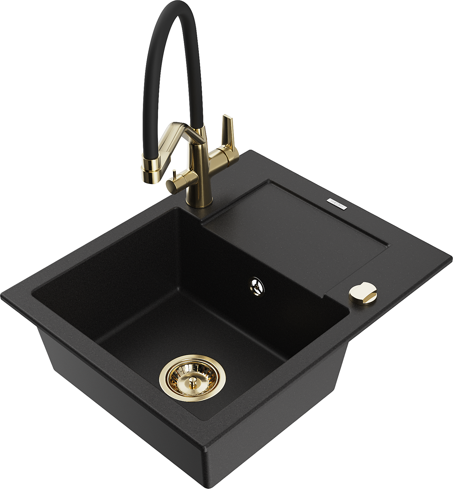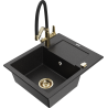 Mexen Enzo 1-bowl granite sink with drainer and Duo kitchen tap, black - 6506-77-671701-57-G