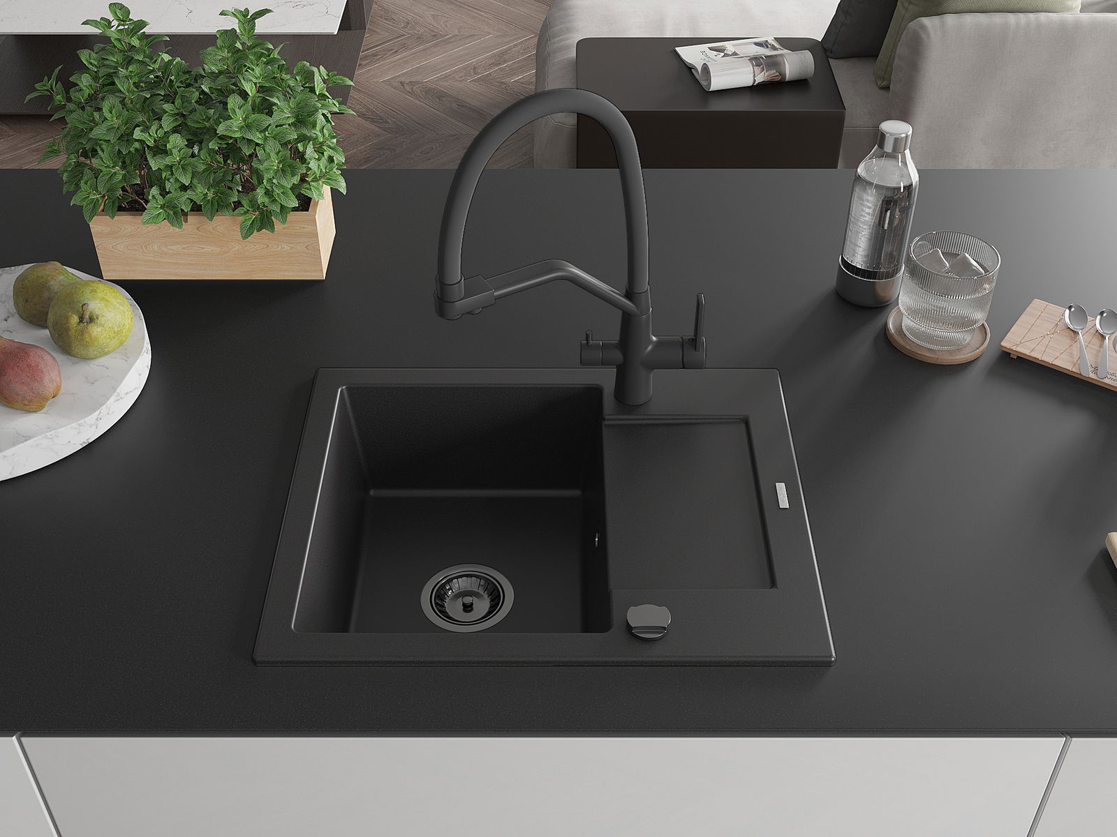 The sink is made of high quality granite. It is an elegant and, above all, practical complement to every kitchen, regardless of its style. High quality and granite durability ensure many years of use.