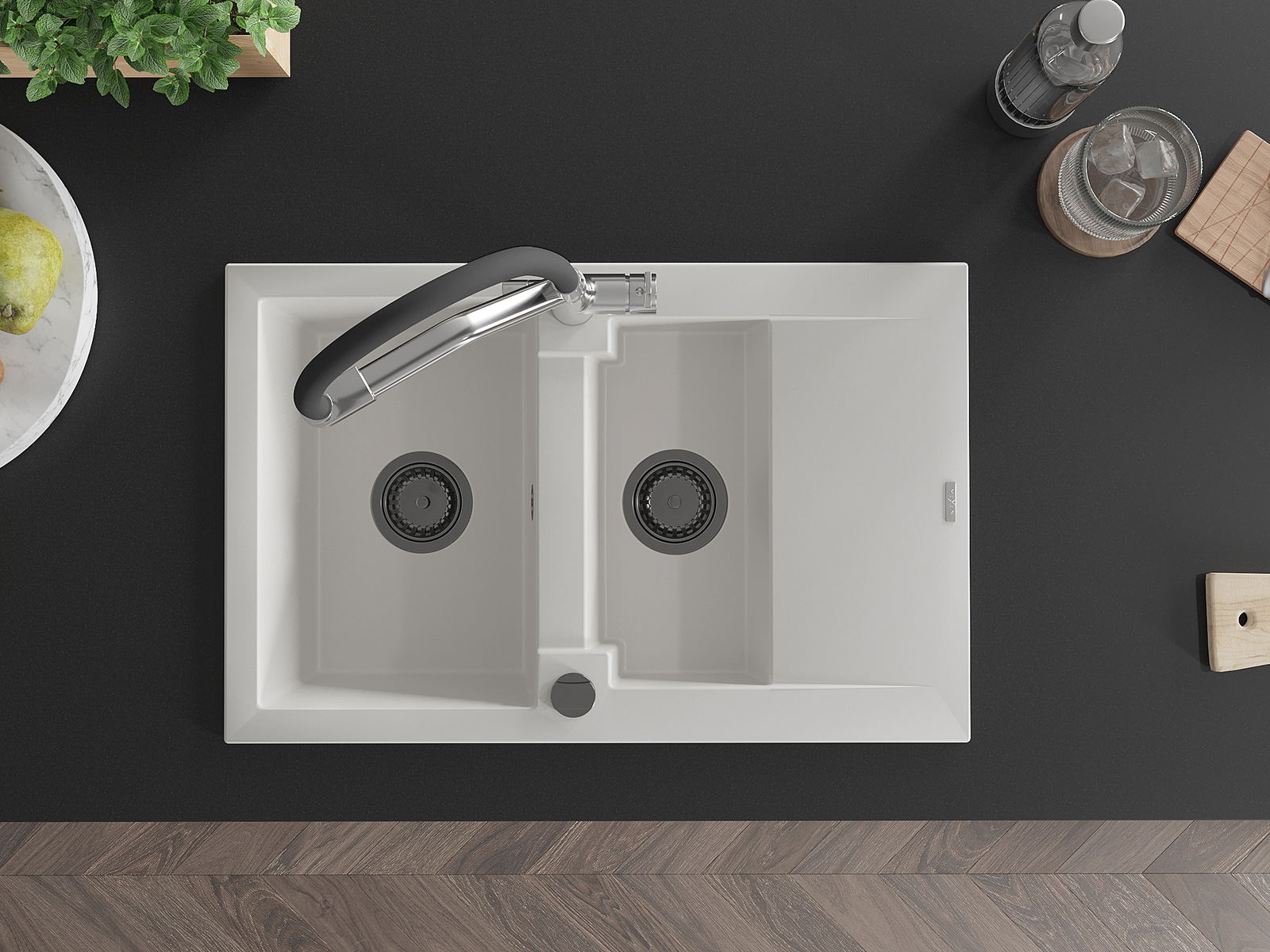 The sink is made of high quality granite. It is an elegant and, above all, practical complement to every kitchen, regardless of its style. High quality and granite durability ensure many years of use.