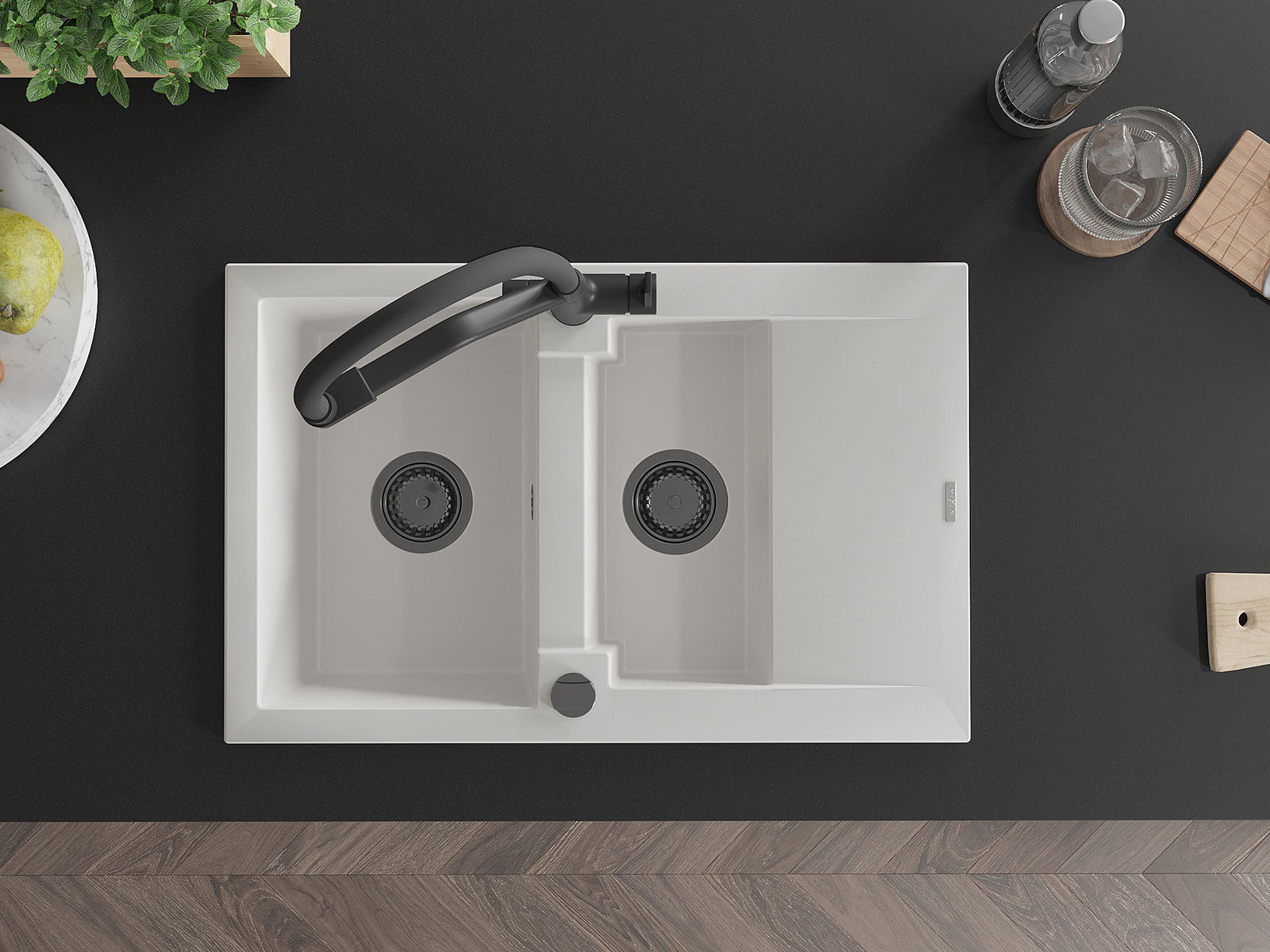 The surface of the sink is resistant to stains and discoloration, thanks to which it is easy to clean and retains its color for a long time. Aesthetic and practically complementing every kitchen.