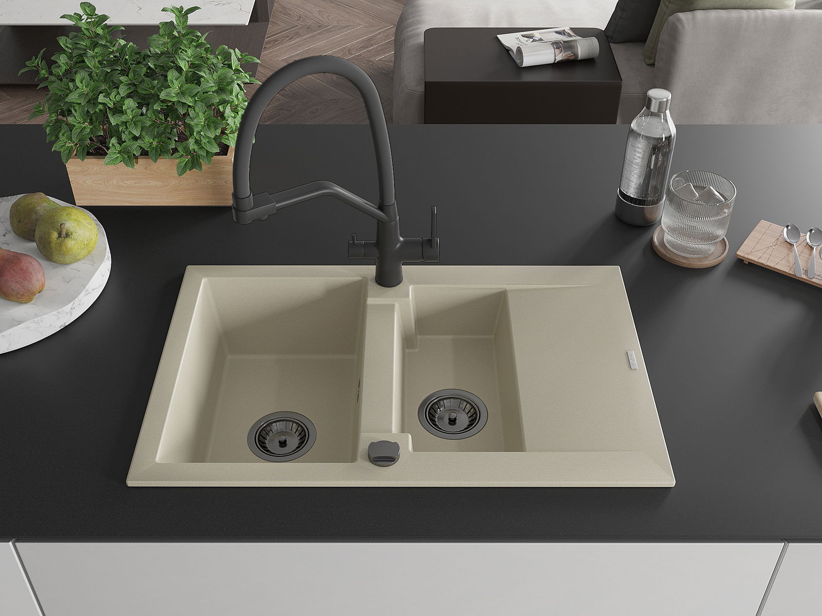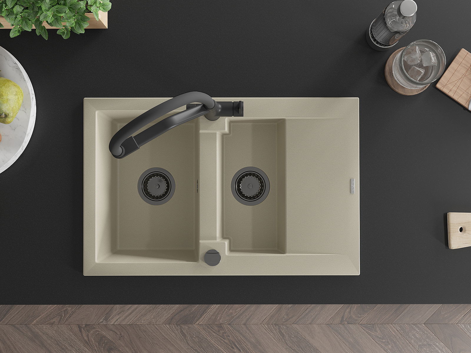 The sink is made of high quality granite. It is an elegant and, above all, practical complement to every kitchen, regardless of its style. High quality and granite durability ensure many years of use.