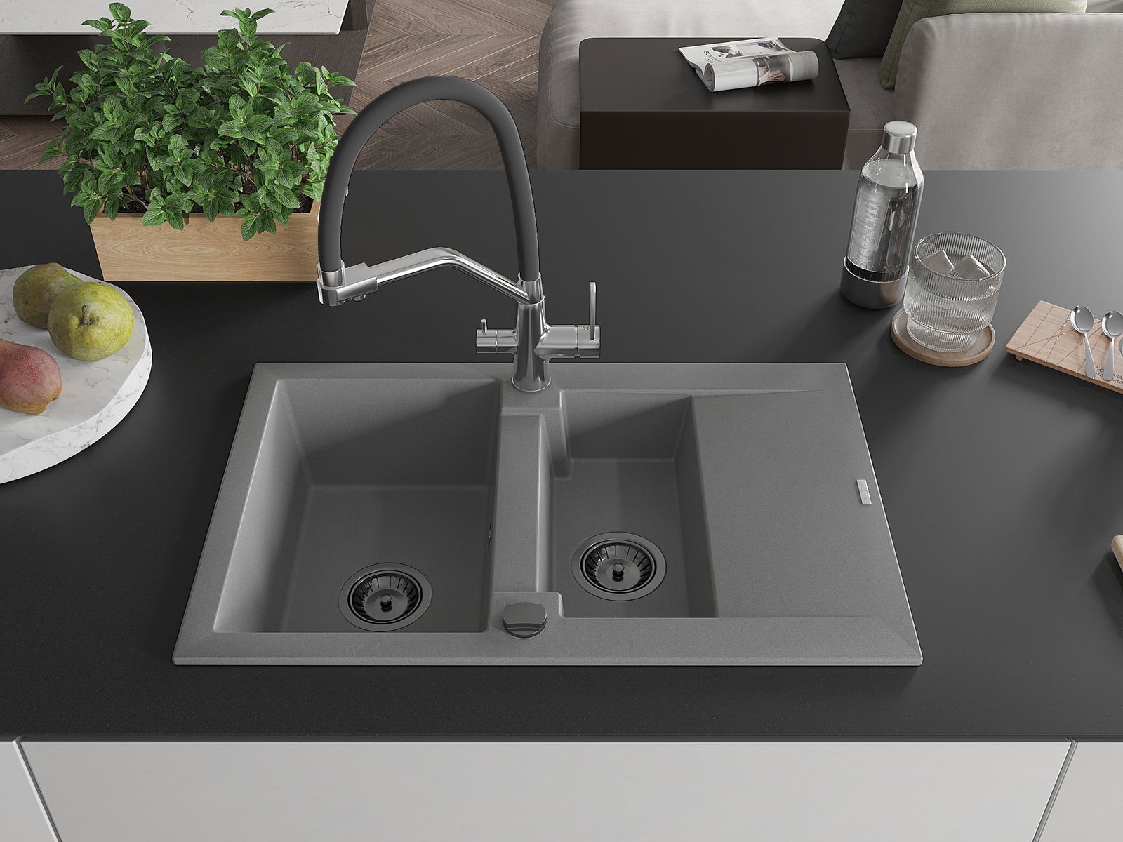 The sink is made of high quality granite. It is an elegant and, above all, practical complement to every kitchen, regardless of its style. High quality and granite durability ensure many years of use.