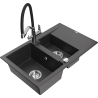 Mexen Gaspar granite sink 1.5-bowl with drainer and Duo kitchen tap, black/silver metallic - 6507-73-671701-07