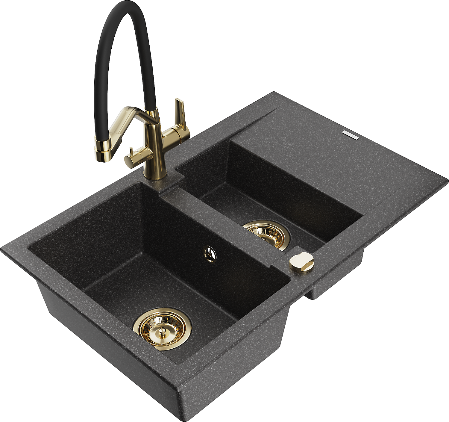Mexen Gaspar granite sink 1.5-bowl with drainer and Duo kitchen tap, black speckled - 6507-76-671701-57-G