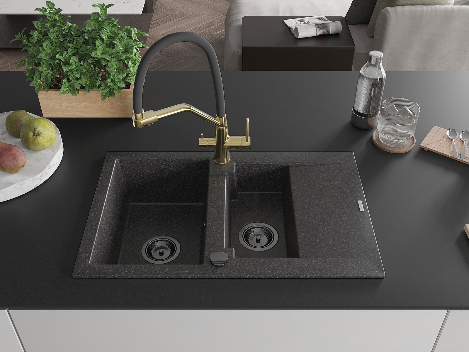 The sink is made of high quality granite. It is an elegant and, above all, practical complement to every kitchen, regardless of its style. High quality and granite durability ensure many years of use.