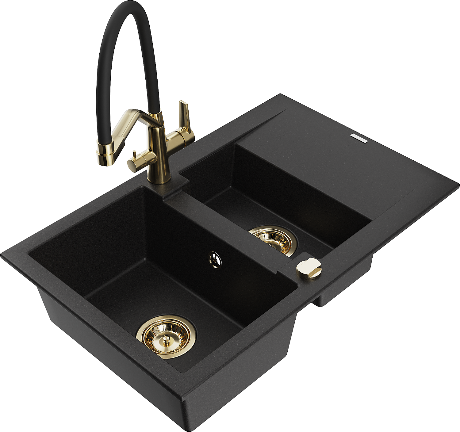 Mexen Gaspar granite sink 1.5-bowl with drainer and Duo kitchen tap, black - 6507-77-671701-57-G