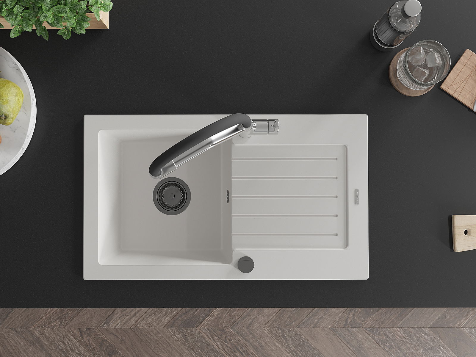 The surface of the sink is resistant to stains and discoloration, thanks to which it is easy to clean and retains its color for a long time. Aesthetic and practically complementing every kitchen.