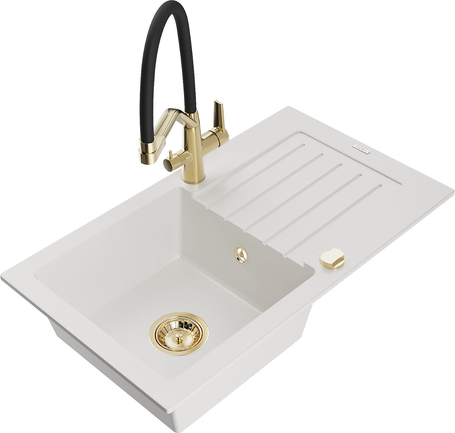 Mexen Pablo granite sink 1-bowl with drainer and kitchen tap Duo, white - 6510-20-671701-57-G
