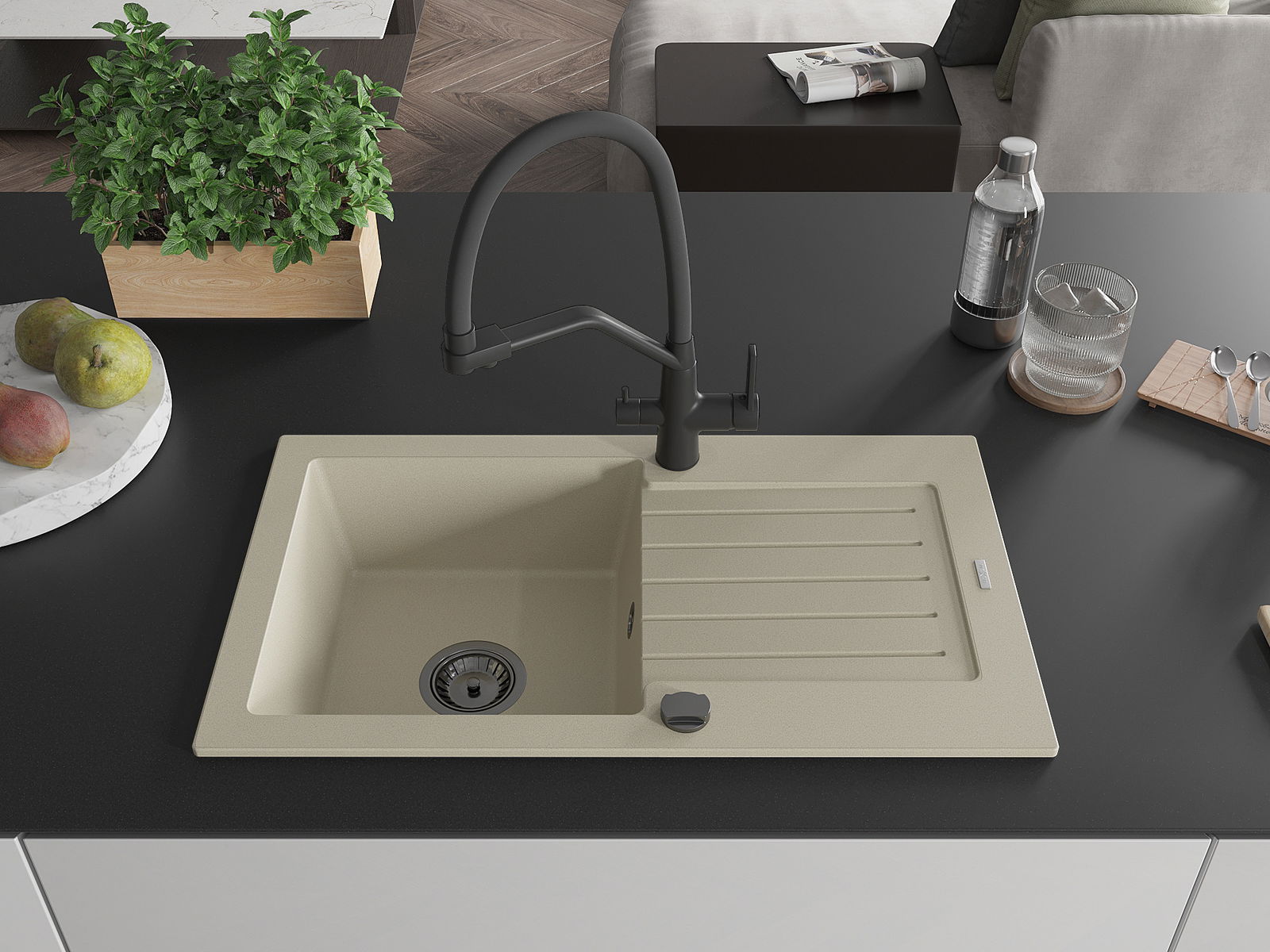The sink is made of high quality granite. It is an elegant and, above all, practical complement to every kitchen, regardless of its style. High quality and granite durability ensure many years of use.