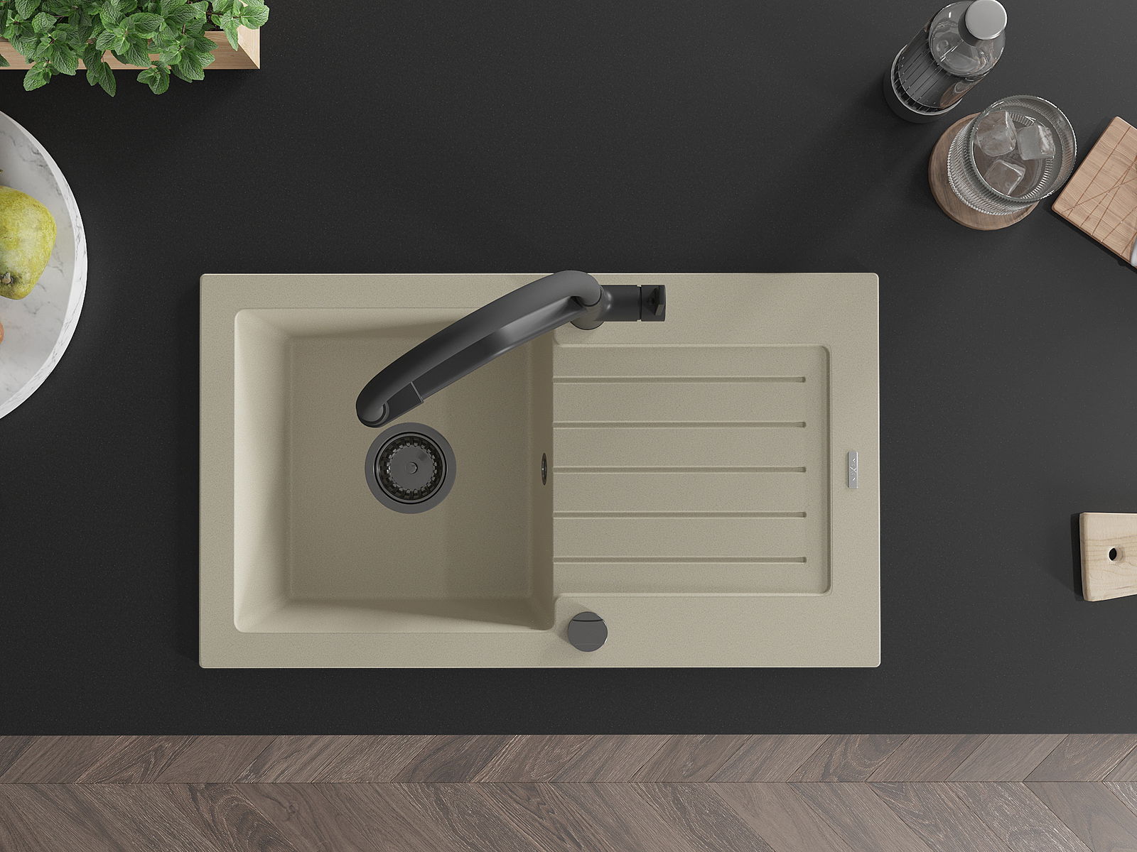Mexen Pablo granite sink 1-bowl with drainer and Duo kitchen tap, beige - 6510-69-671701-70-B