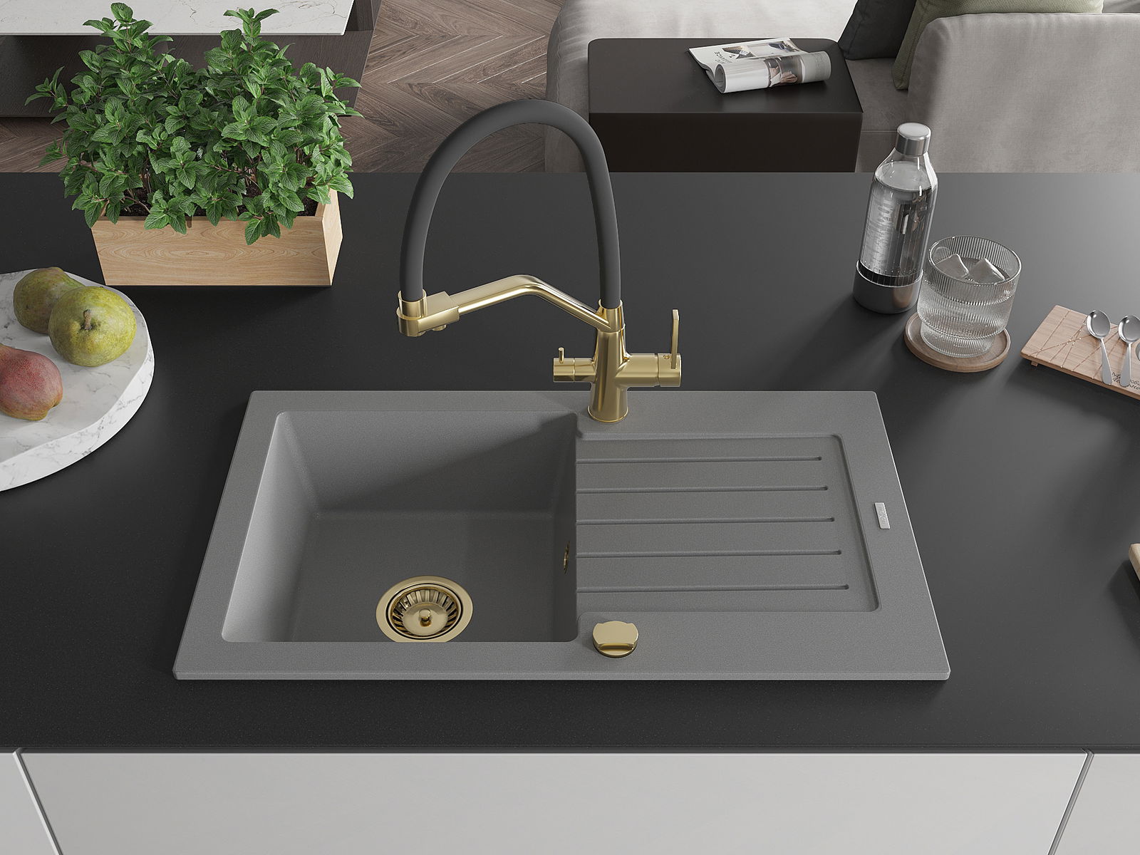 The sink is made of high quality granite. It is an elegant and, above all, practical complement to every kitchen, regardless of its style. High quality and granite durability ensure many years of use.
