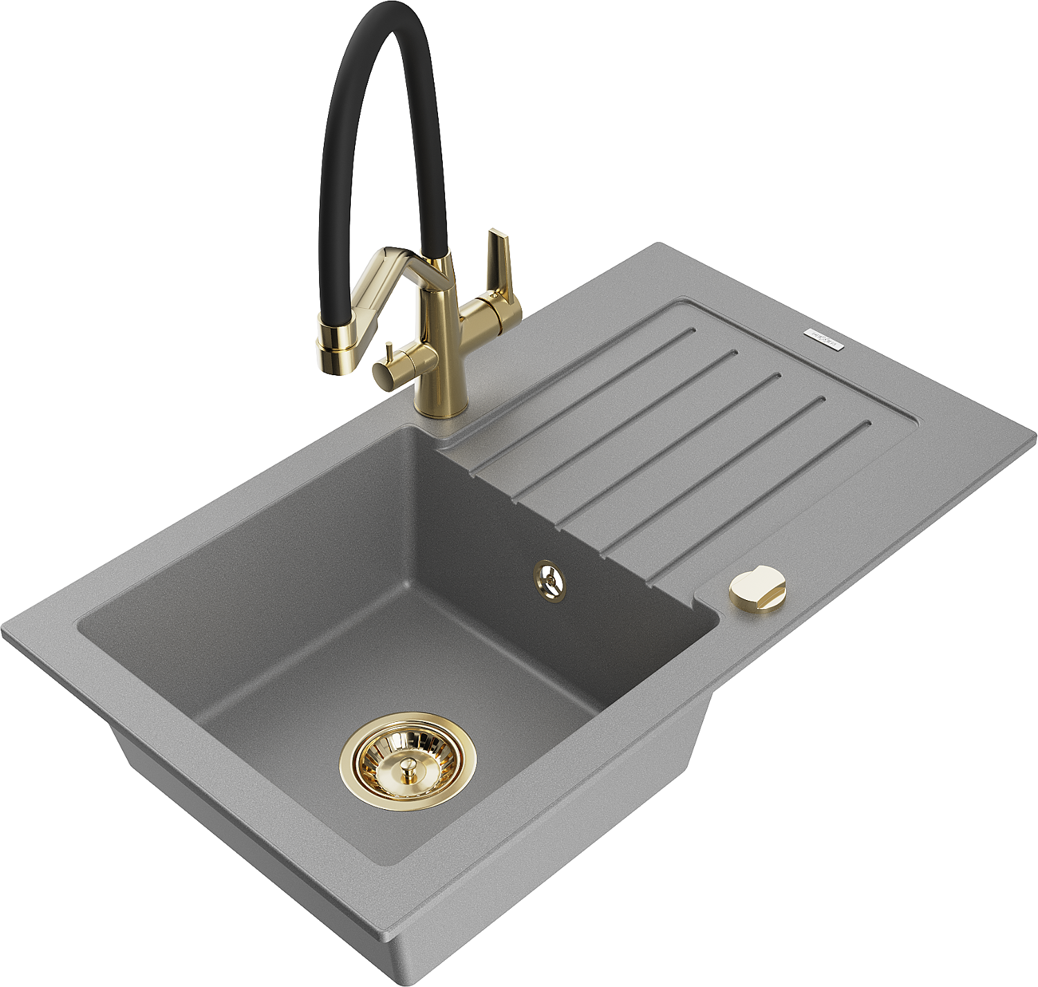 Mexen Pablo Granite Sink 1-Bowl with Drainer and Duo Kitchen Tap, Grey - 6510-71-671701-57-G