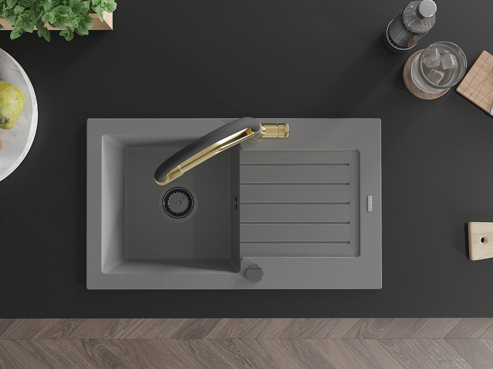 The sink is made of high quality granite. It is an elegant and, above all, practical complement to every kitchen, regardless of its style. High quality and granite durability ensure many years of use.