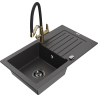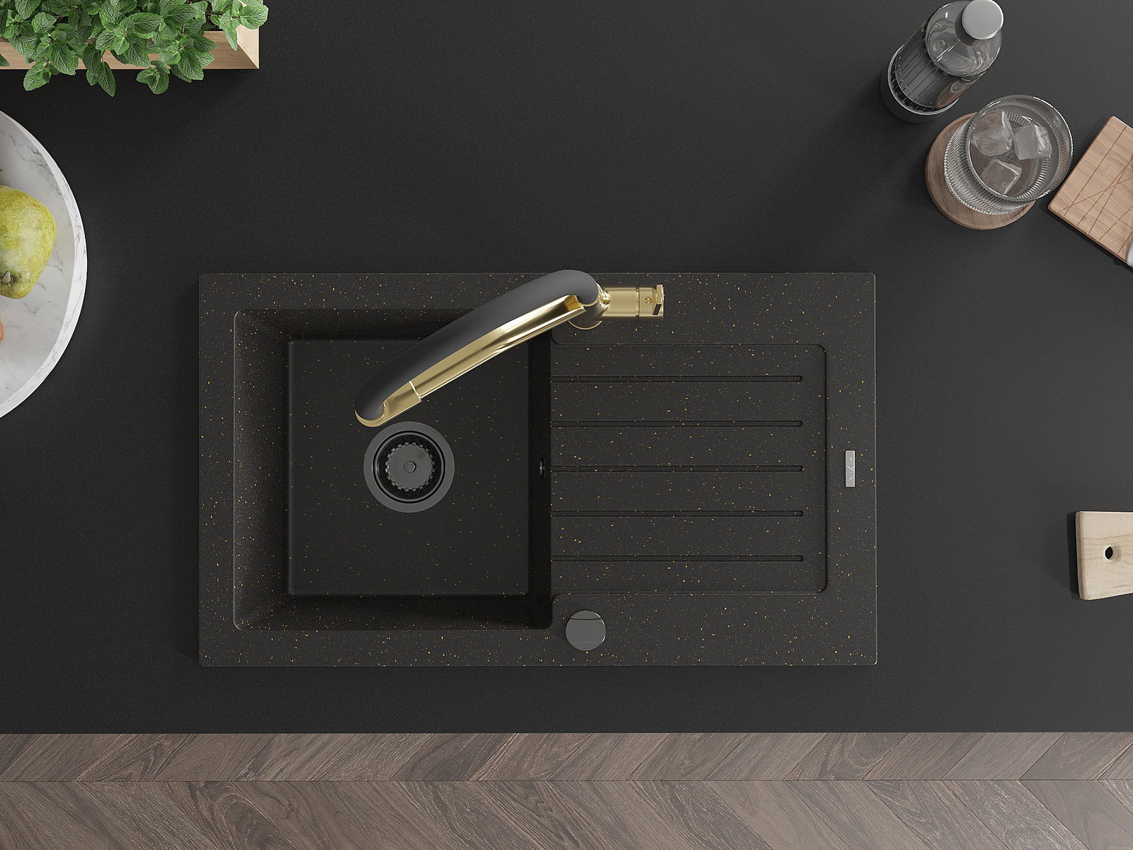 Mexen Pablo Granite Sink 1-Bowl with Drainer and Duo Kitchen Tap, Black/Gold Metallic - 6510-75-671701-57-B