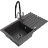 Mexen Pablo 1-bowl granite sink with drainer and Duo kitchen tap, black - 6510-77-671701-07-B