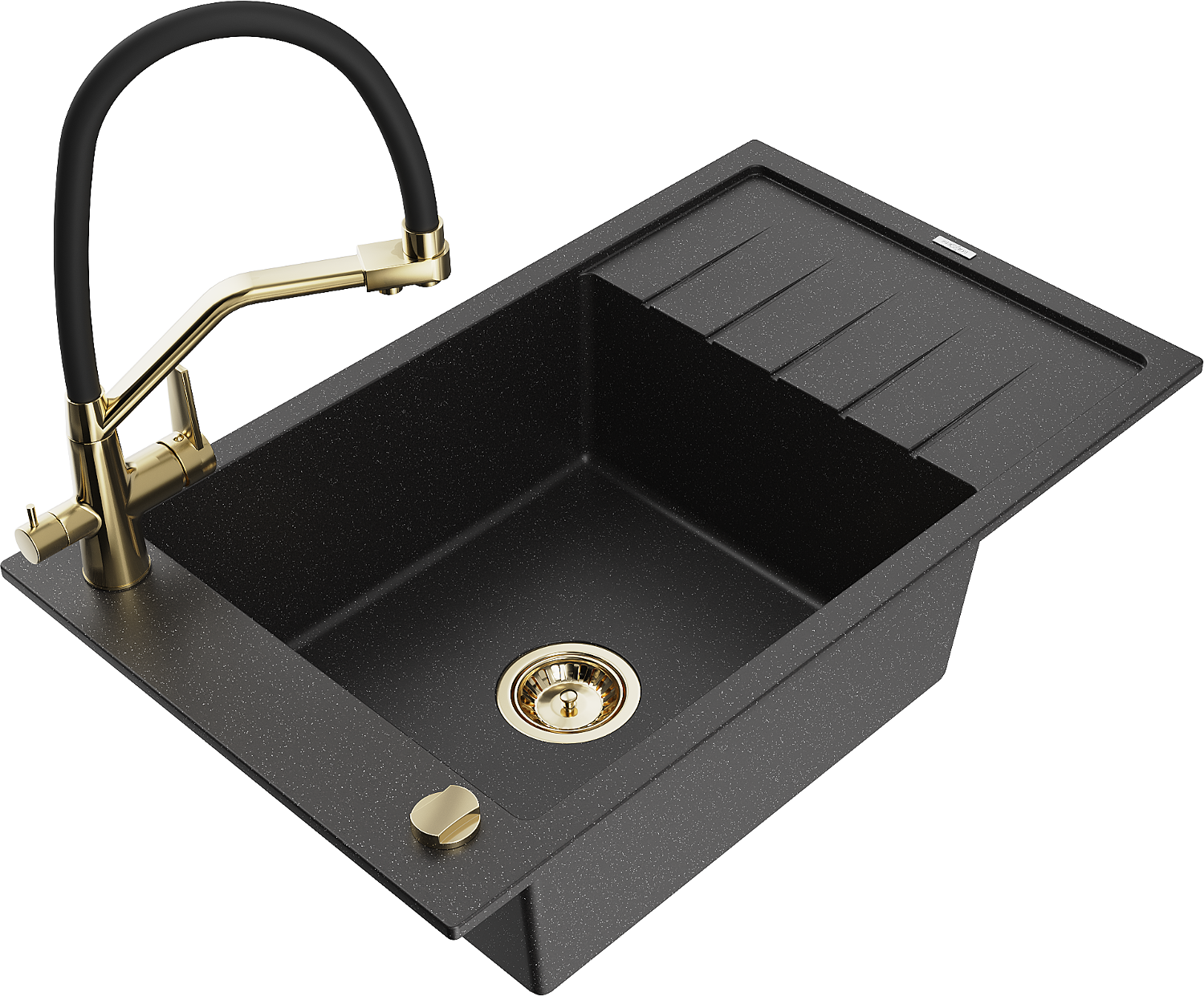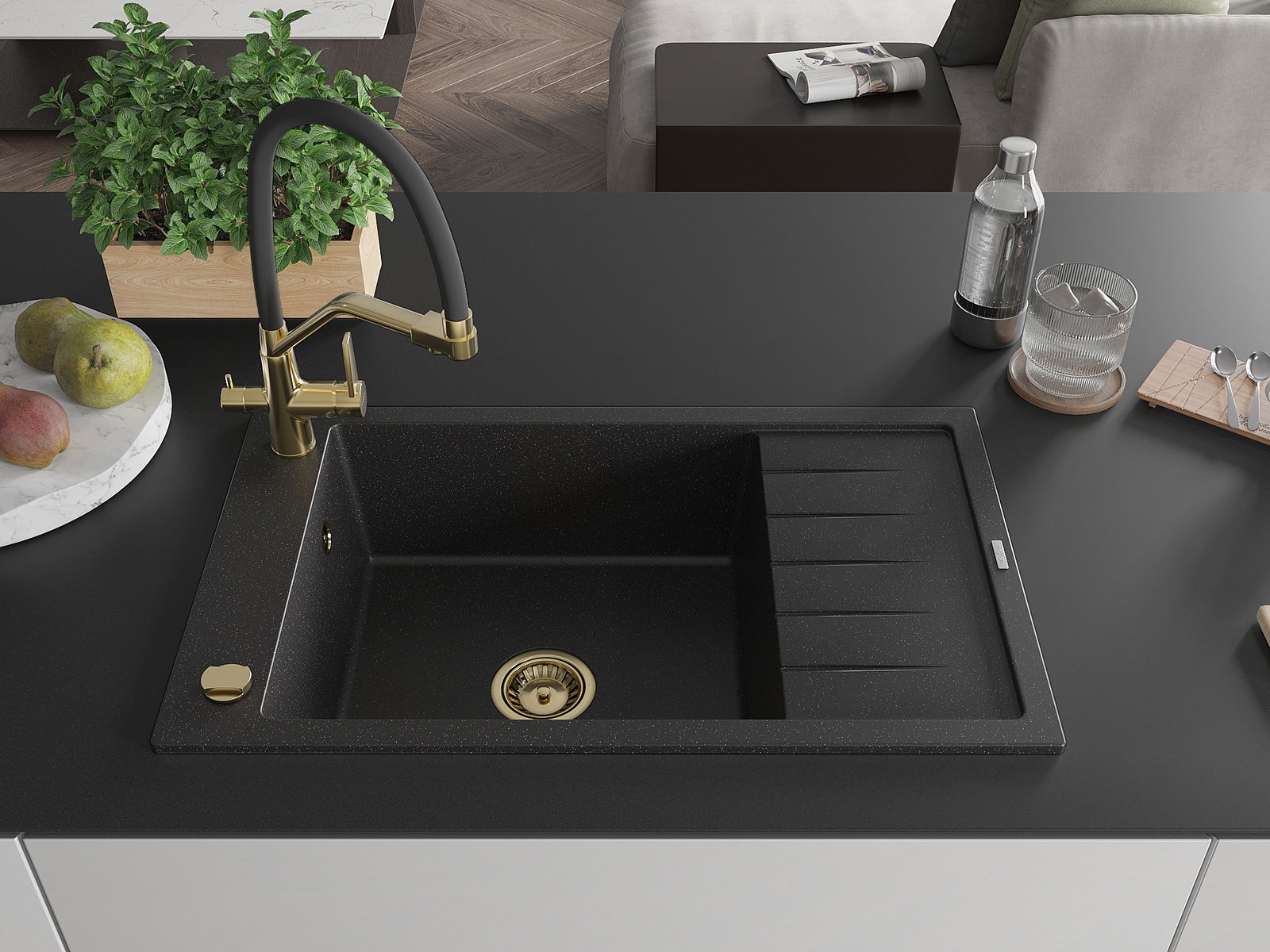 The sink is made of high quality granite. It is an elegant and, above all, practical complement to every kitchen, regardless of its style. High quality and granite durability ensure many years of use.