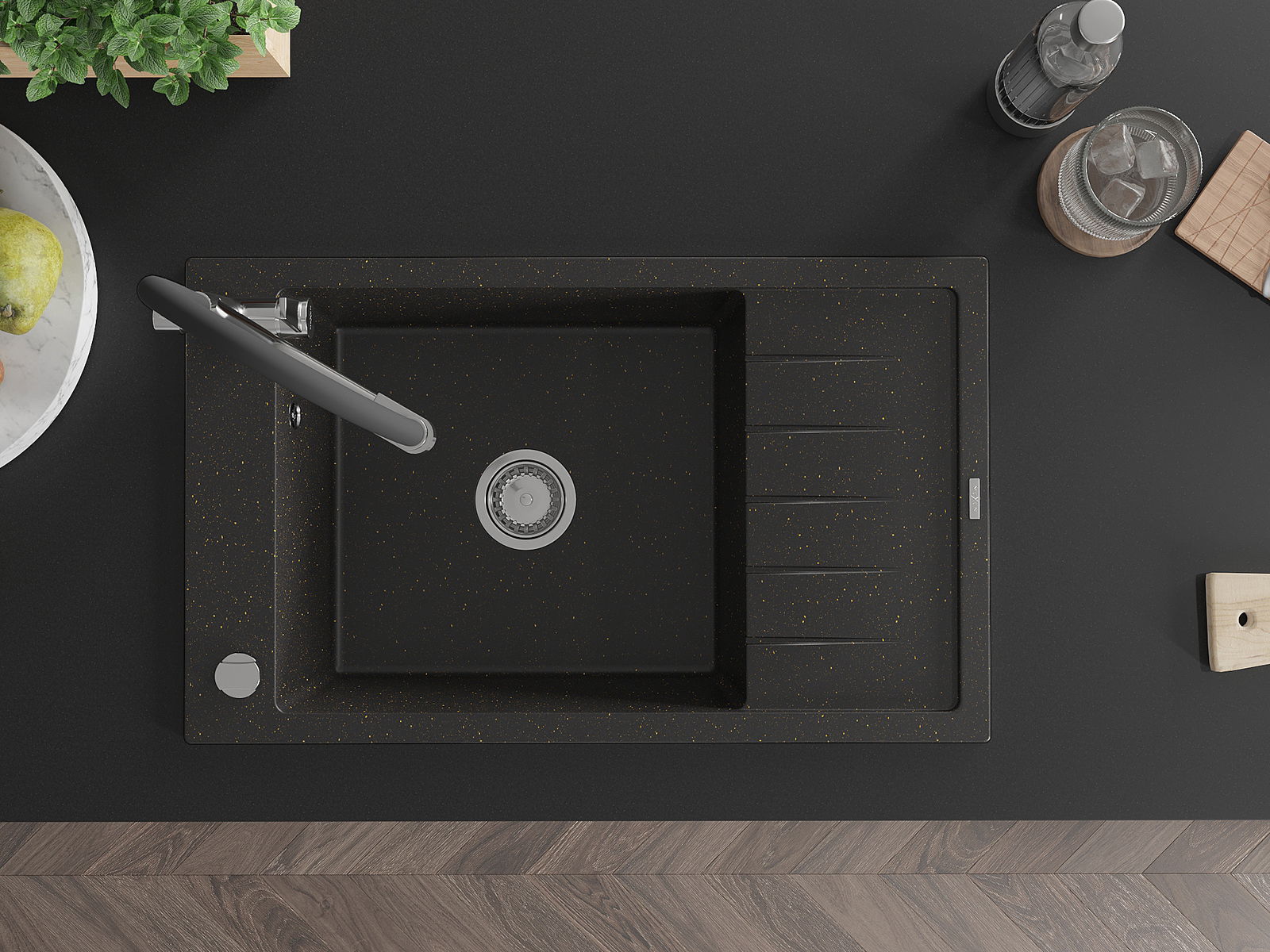 The sink is made of high quality granite. It is an elegant and, above all, practical complement to every kitchen, regardless of its style. High quality and granite durability ensure many years of use.