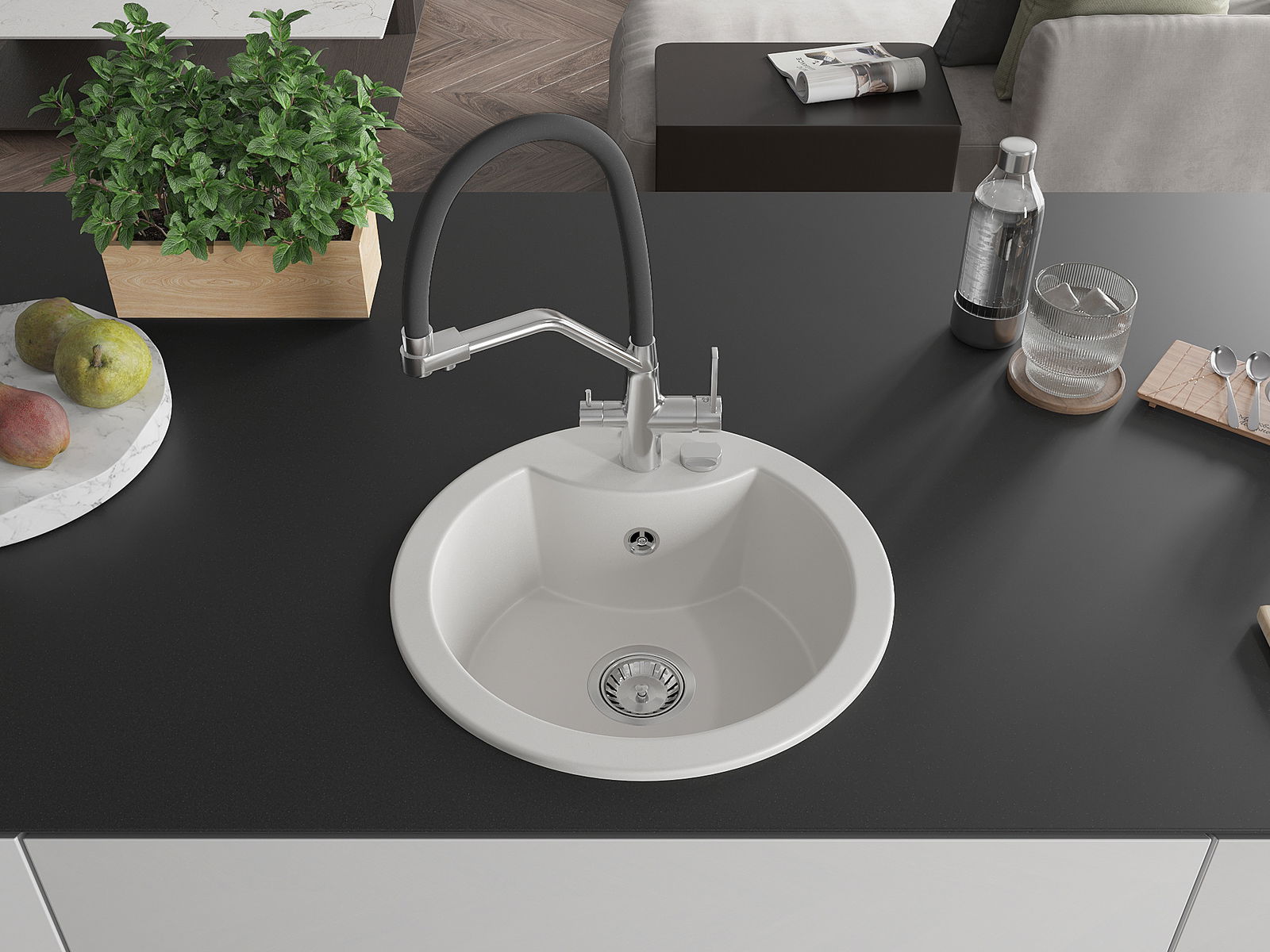 The surface of the sink is resistant to stains and discoloration, thanks to which it is easy to clean and retains its color for a long time. Aesthetic and practically complementing every kitchen.