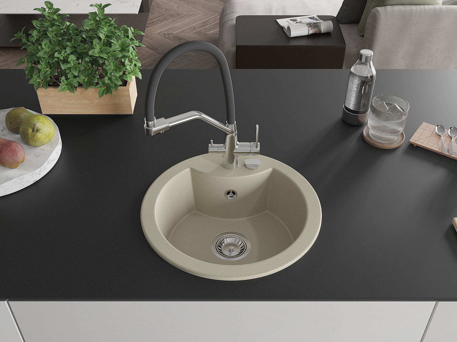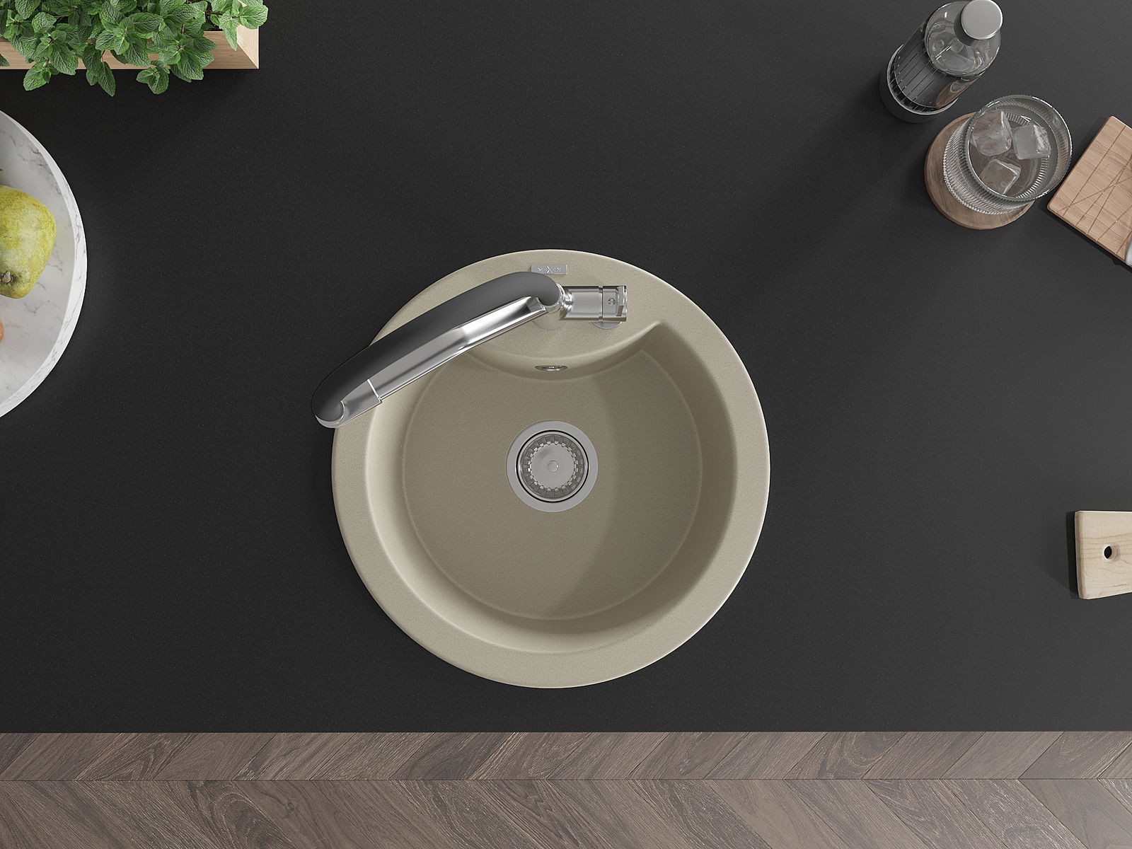 The sink is made of high quality granite. It is an elegant and, above all, practical complement to every kitchen, regardless of its style. High quality and granite durability ensure many years of use.