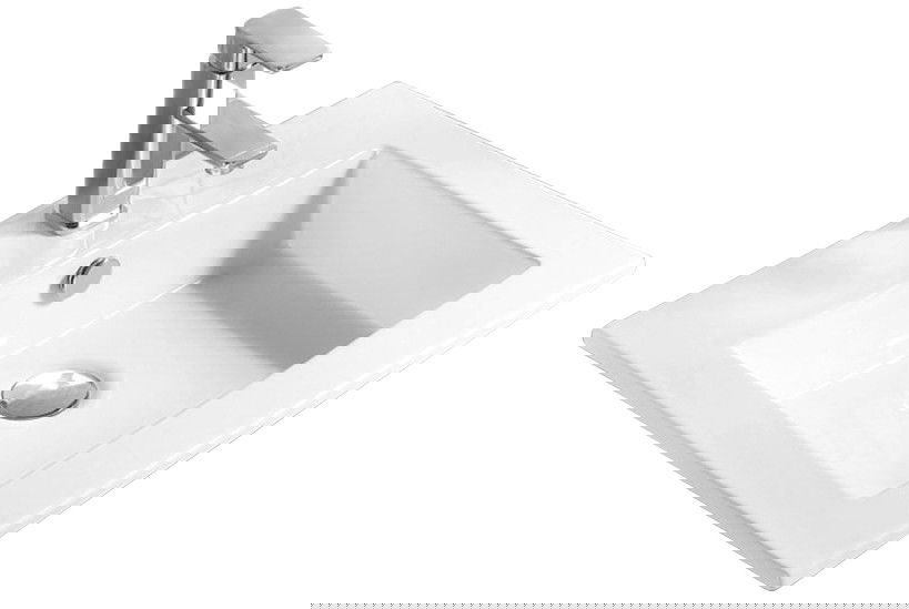 The sink has a hole in which we can mount the battery. This saves a valuable space in the bathroom and emphasize its aesthetics. This solution also allows you to easily keep clean around the sink.
