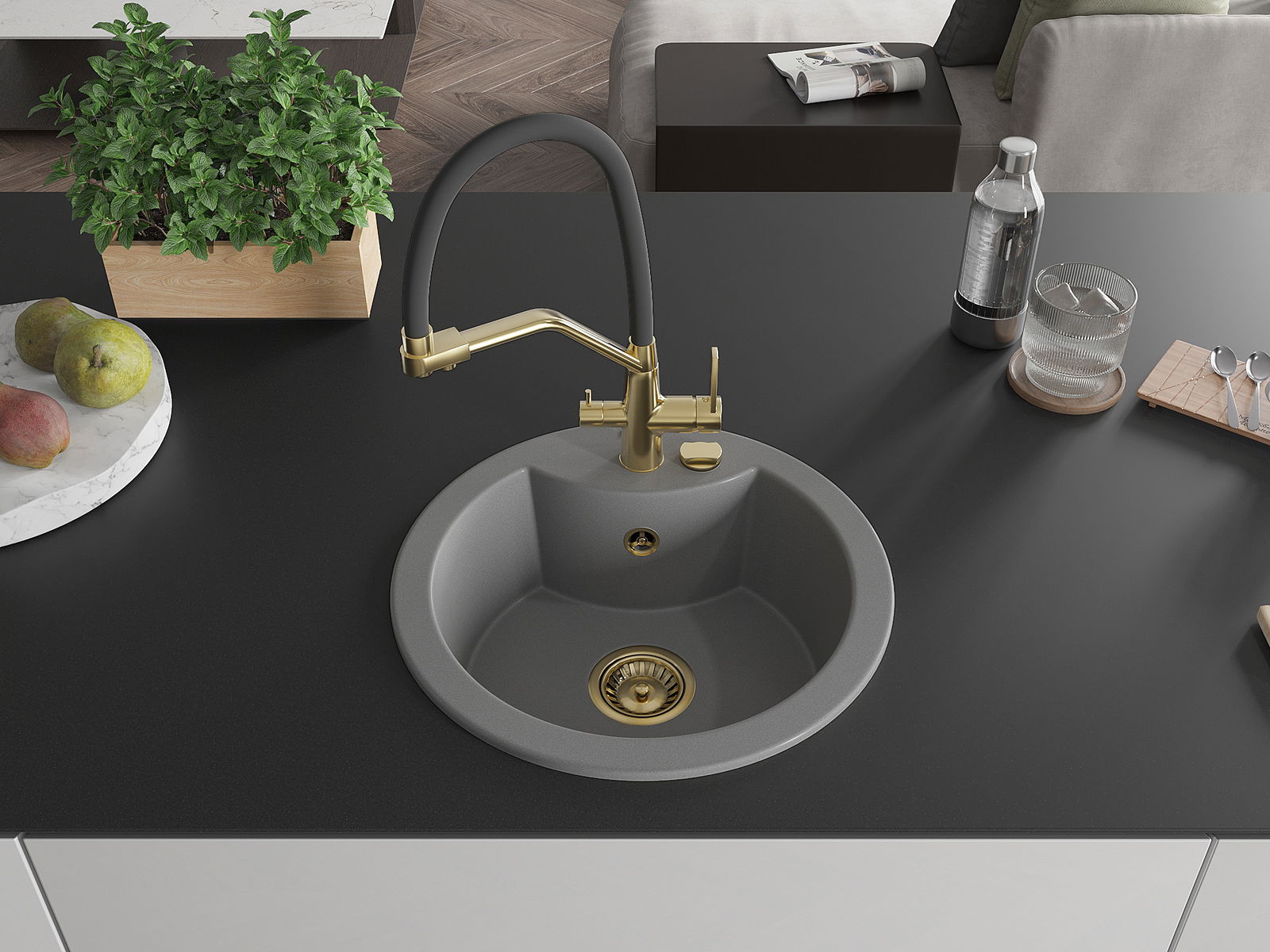 The sink is made of high quality granite. It is an elegant and, above all, practical complement to every kitchen, regardless of its style. High quality and granite durability ensure many years of use.