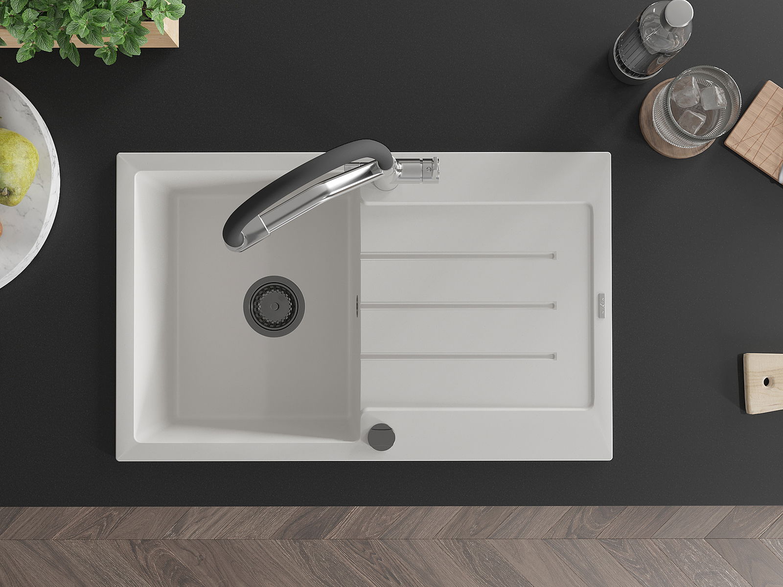 The surface of the sink is resistant to stains and discoloration, thanks to which it is easy to clean and retains its color for a long time. Aesthetic and practically complementing every kitchen.
