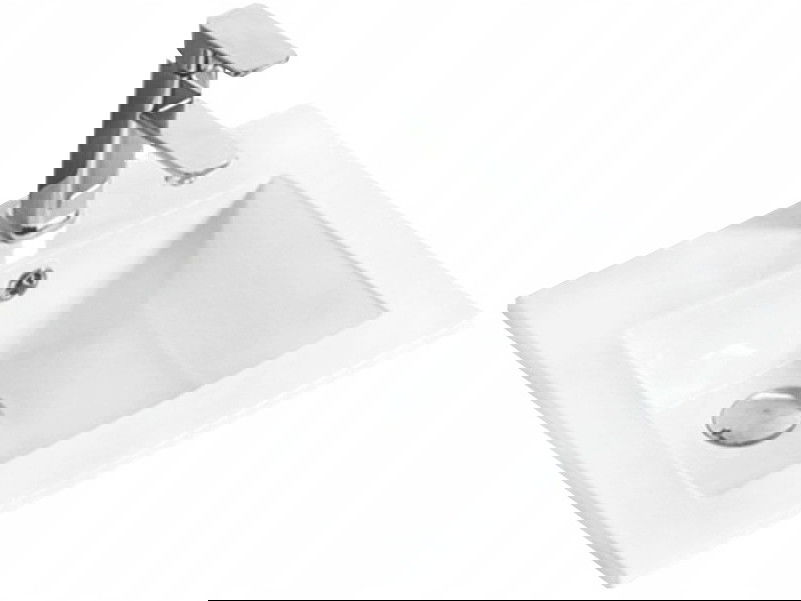 The sink has a hole in which we can mount the battery. This saves a valuable space in the bathroom and emphasize its aesthetics. This solution also allows you to easily keep clean around the sink.
