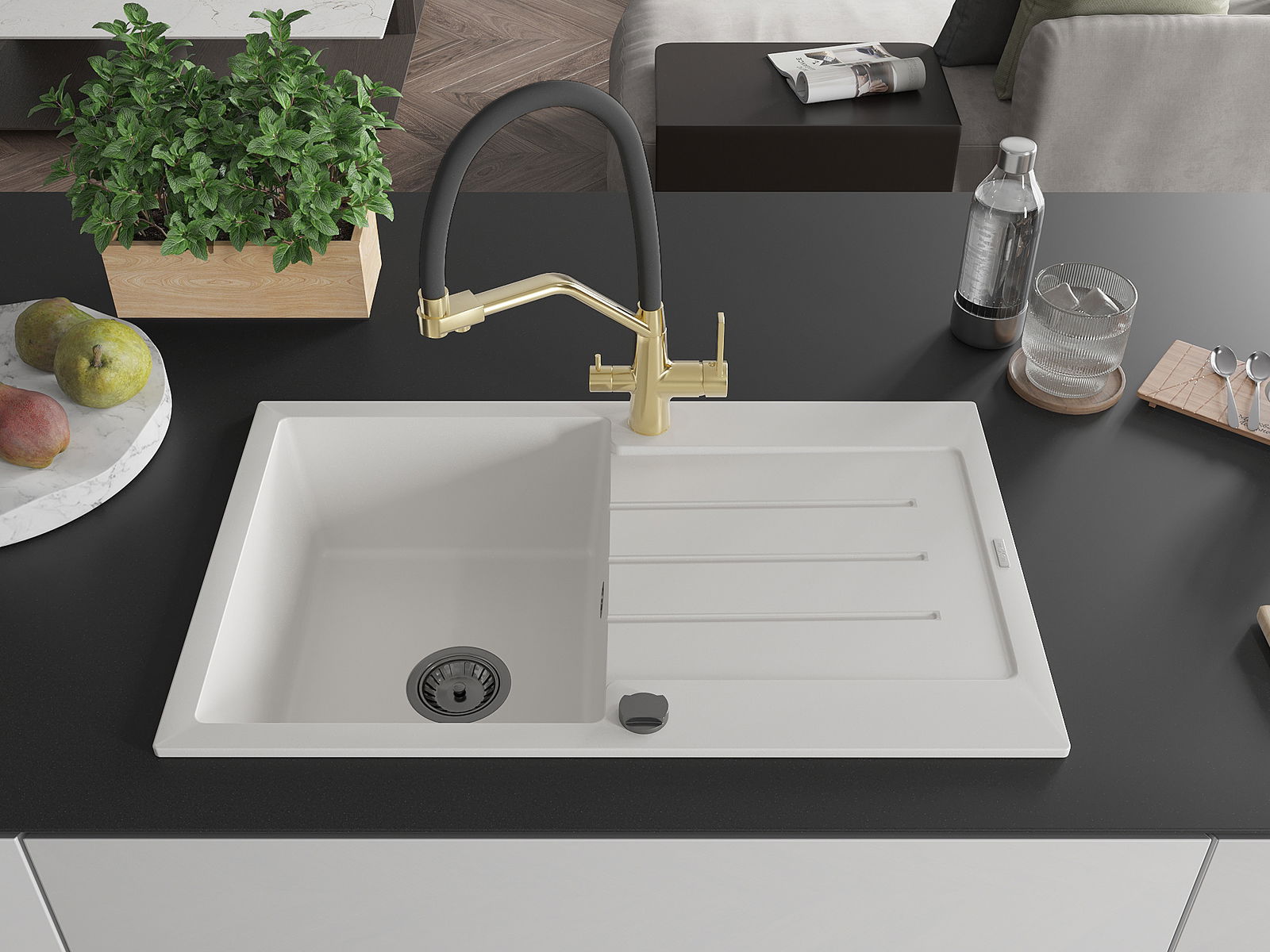 The surface of the sink is resistant to stains and discoloration, thanks to which it is easy to clean and retains its color for a long time. Aesthetic and practically complementing every kitchen.