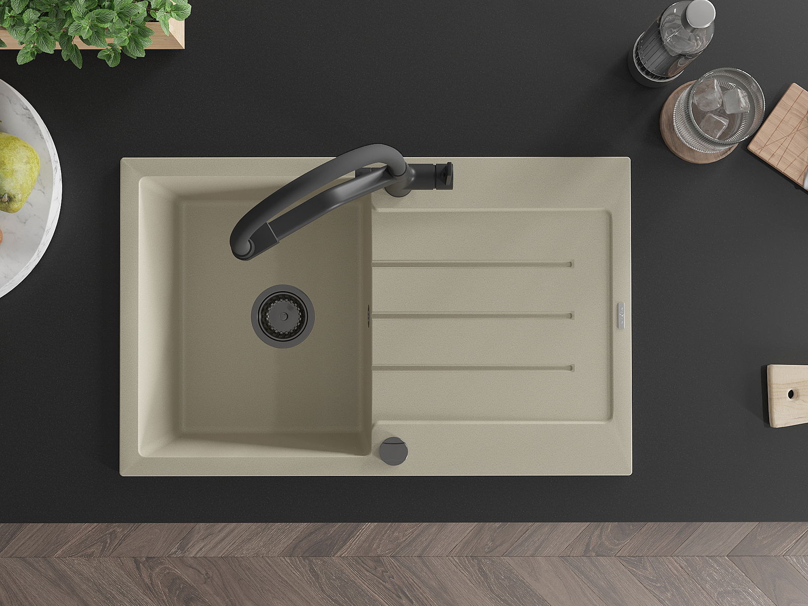 Mexen Bruno 1-bowl granite sink with drainer and Duo kitchen tap, beige - 6513-69-671701-70-B