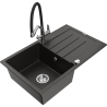 Mexen Bruno granite sink 1-bowl with drainer and Duo kitchen tap, grey - 6513-71-671701-07