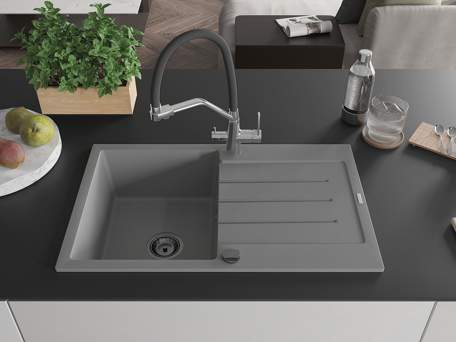 The sink is made of high quality granite. It is an elegant and, above all, practical complement to every kitchen, regardless of its style. High quality and granite durability ensure many years of use.