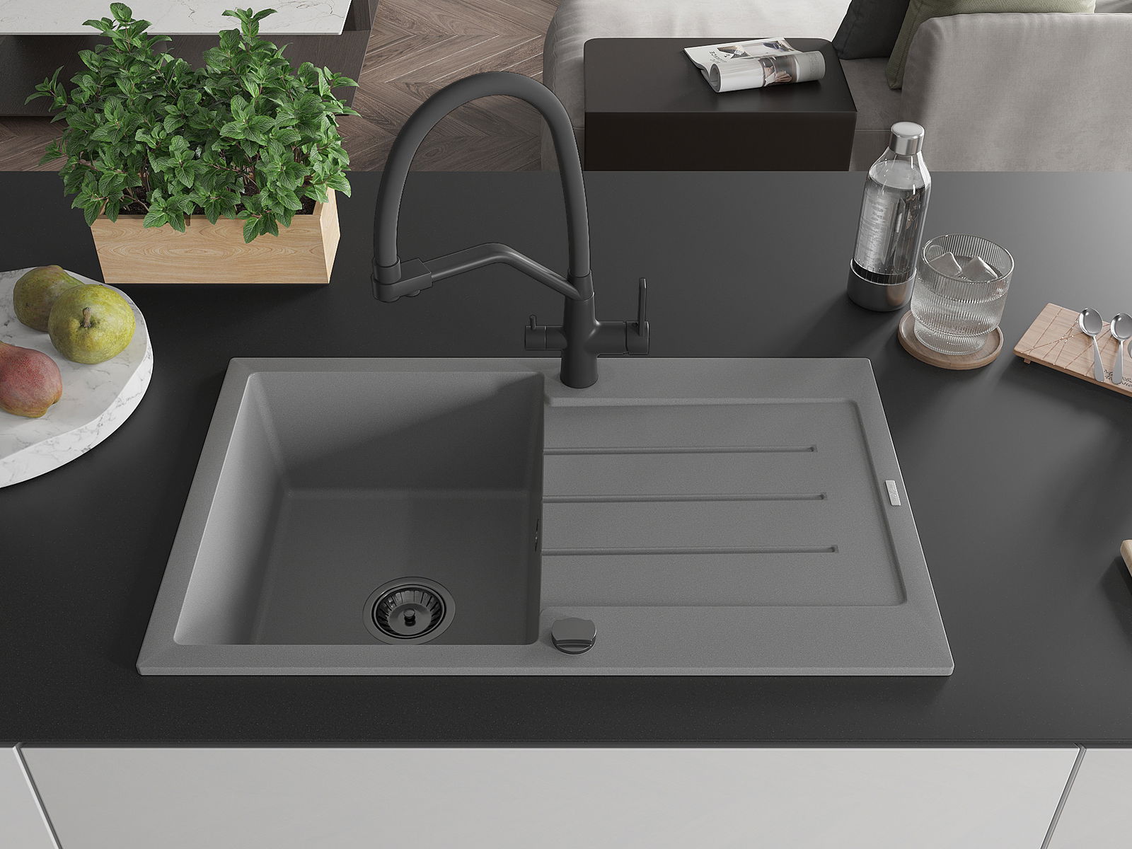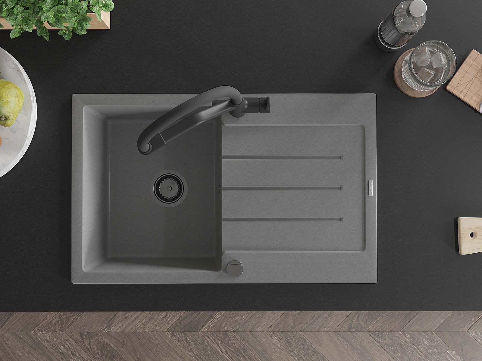 The sink is made of high quality granite. It is an elegant and, above all, practical complement to every kitchen, regardless of its style. High quality and granite durability ensure many years of use.